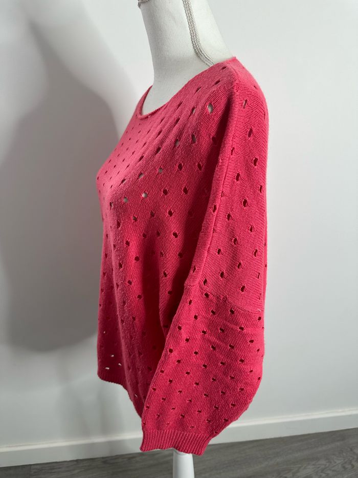 Pull oversize angora en maille ajourée rose T38 M - photo numéro 3