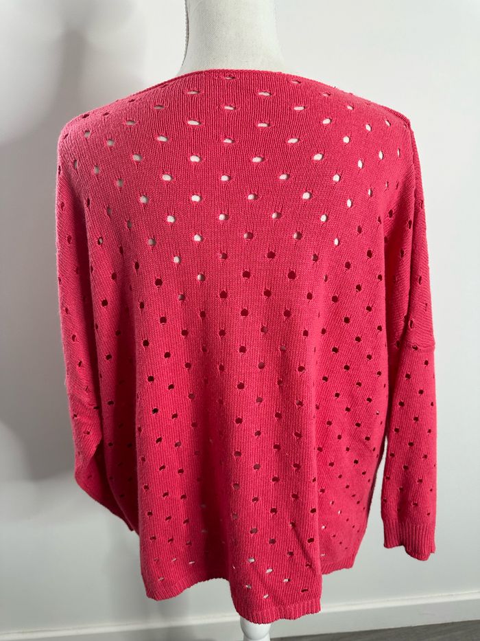 Pull oversize angora en maille ajourée rose T38 M - photo numéro 7