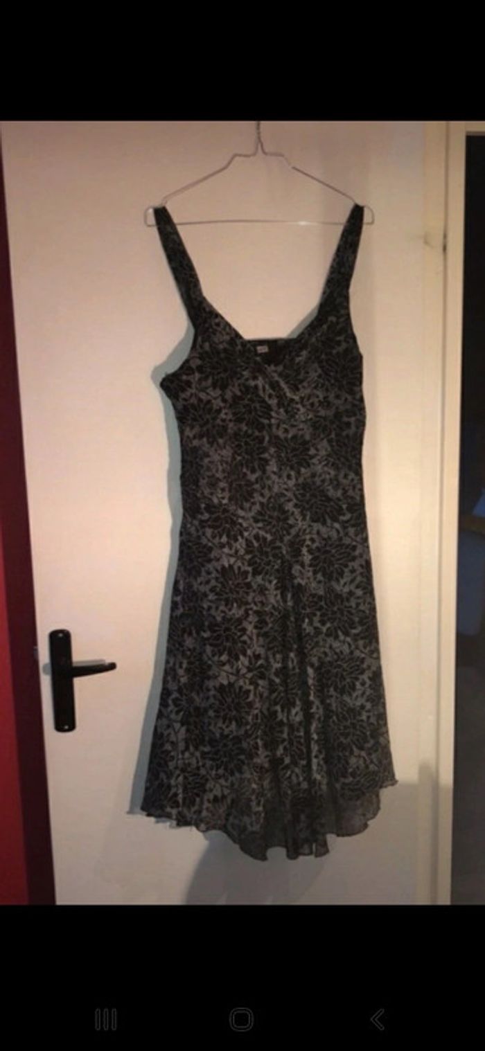 Très jolie robe mi longue Motif fleurs Noir et blanc Doublé Porté une fois