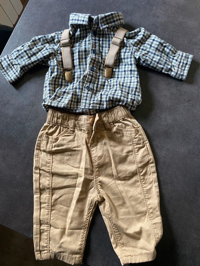 Ensemble tape à l’œil Chemise et pantalon en toile avec bretelle Neuf jamais porté