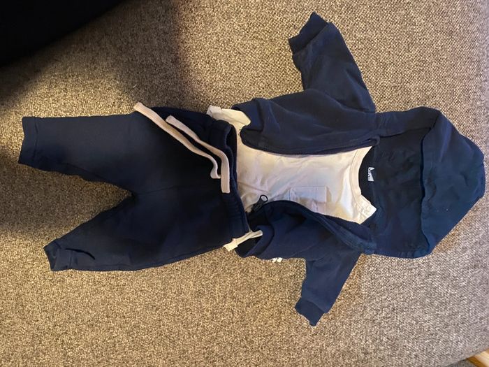 Ensemble avec un tee shirt manche courte Un gilet et un jogging taille 1 mois