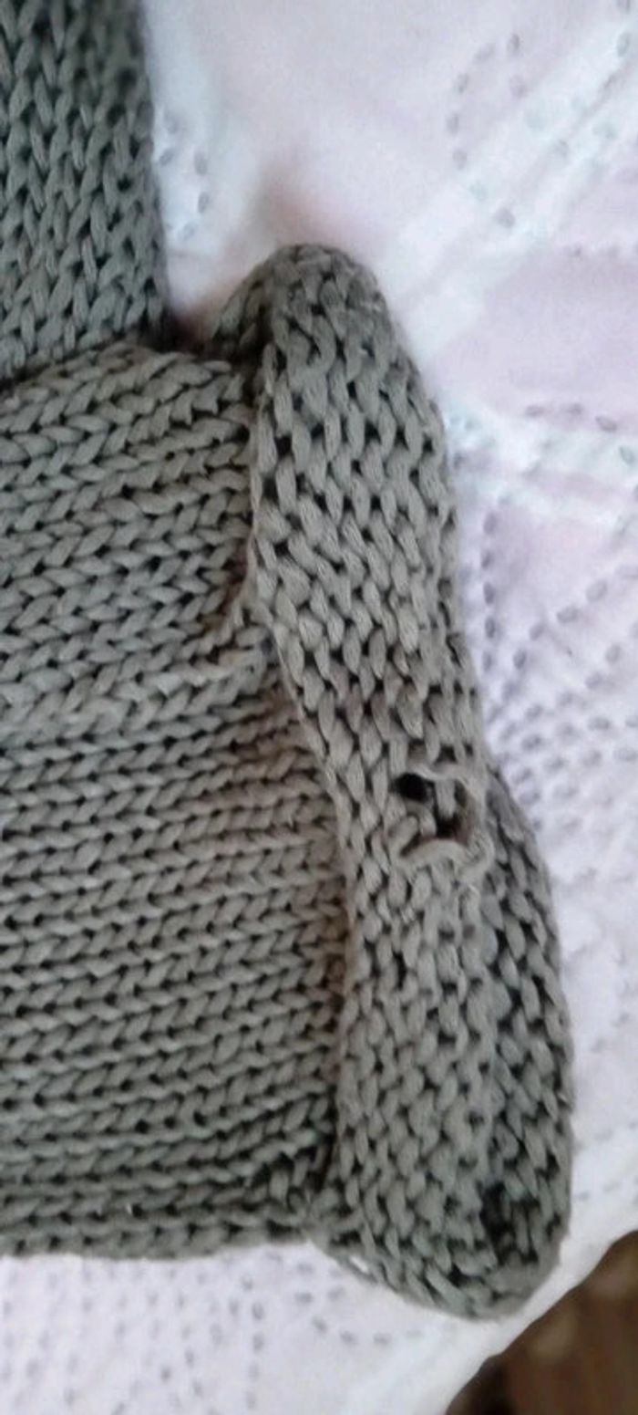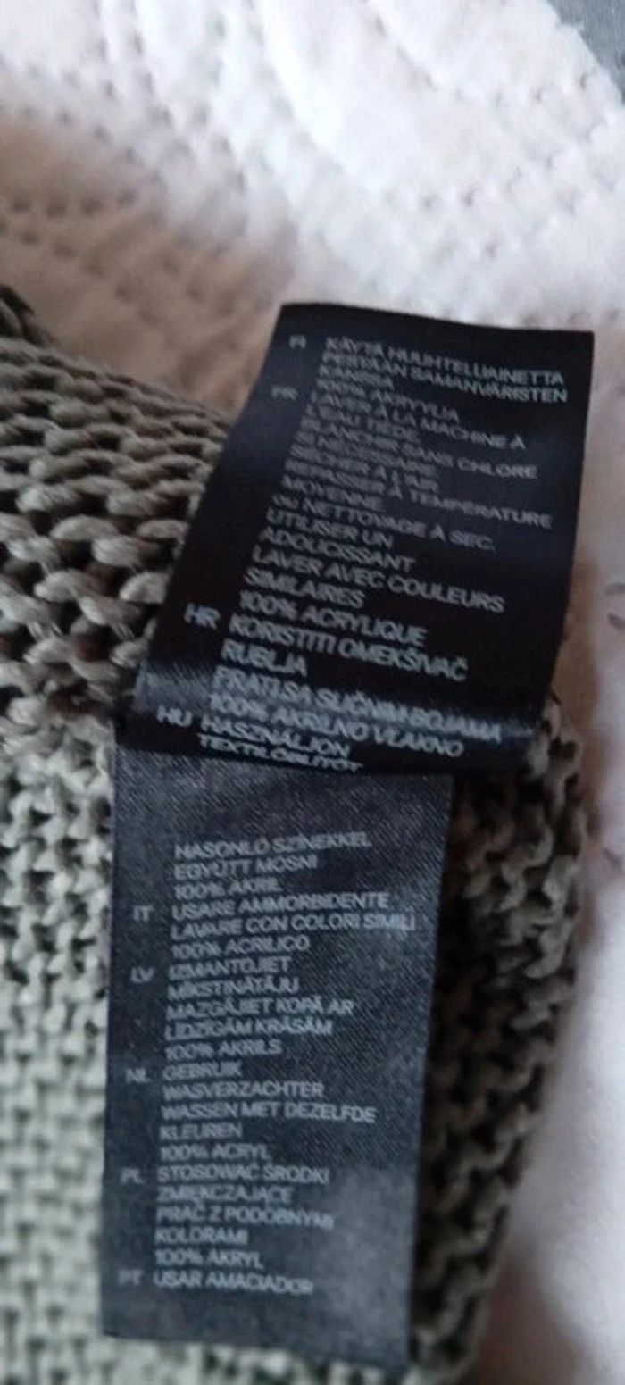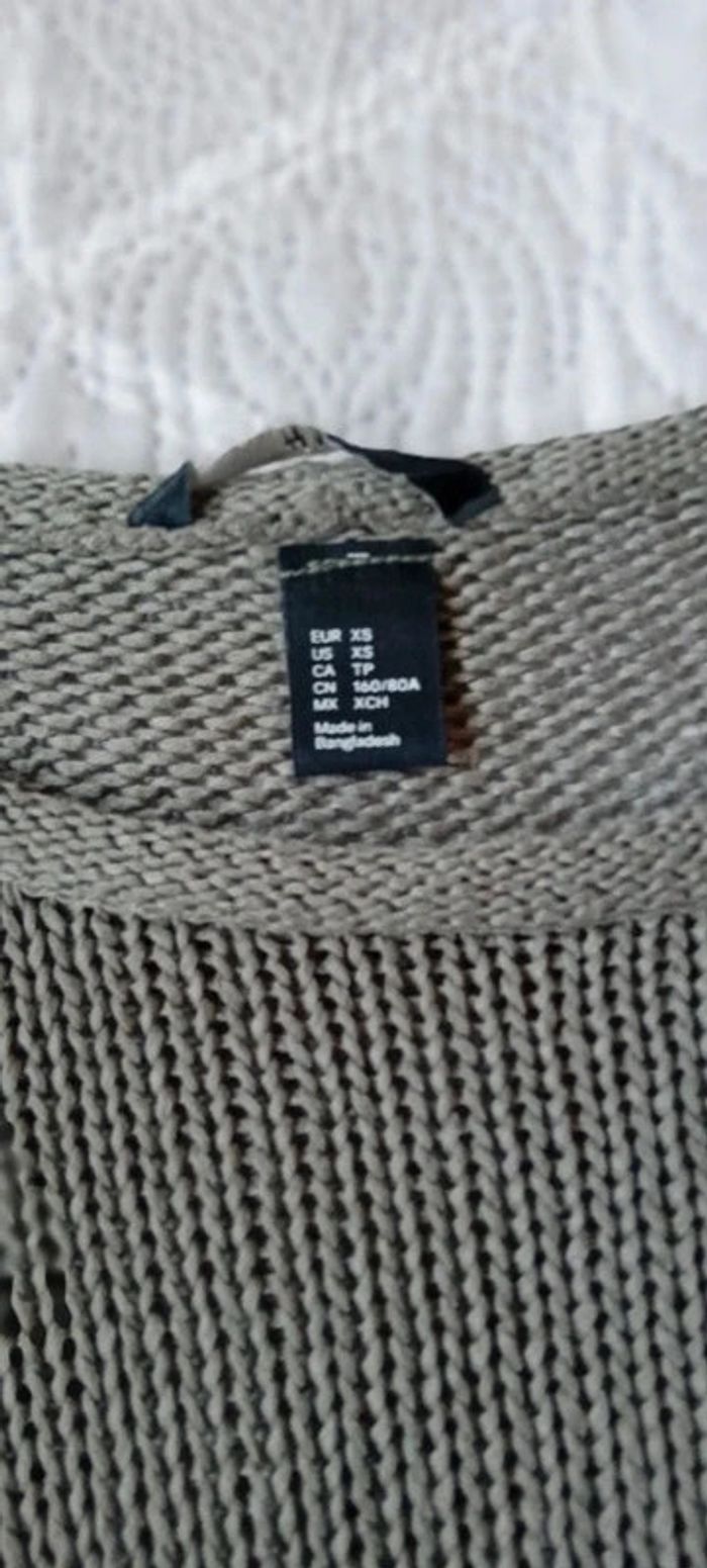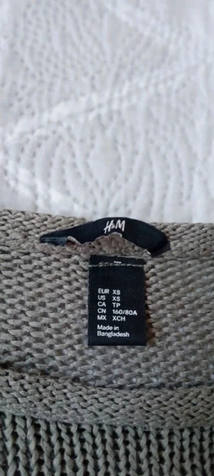 Pull manches courtes avec revers maille fine un peu ajourée idéal porté au dessus d une chemise longueur 49 cm devant 51 cm derrière largeur aisselles à aisselles 42 cm largeur épaules 40 cm peu porté en bon état ⚠️ un petit trou au niveau du revers d une manche qui nécessite un point de couture #midole #midolefemme #midolefemmexs #pullfemme34 #pullfemmexs #pullmanchescourtes #pullmaillefine #h&m #kaki