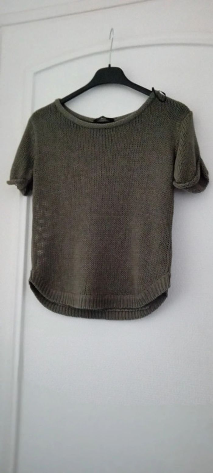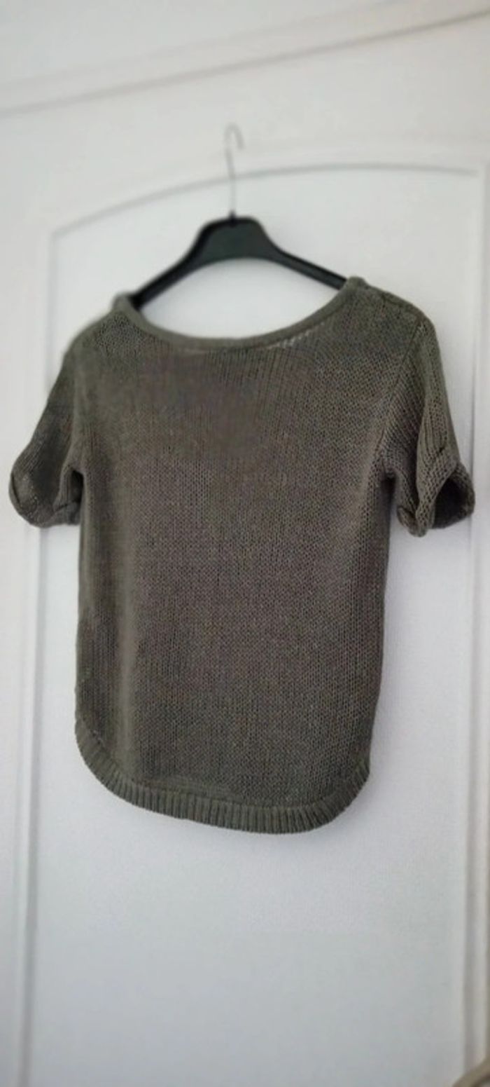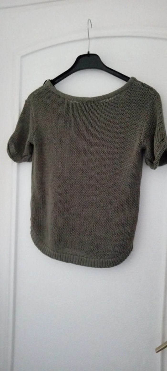 Pull manches courtes col rond maille fine kaki femme xs - photo numéro 2