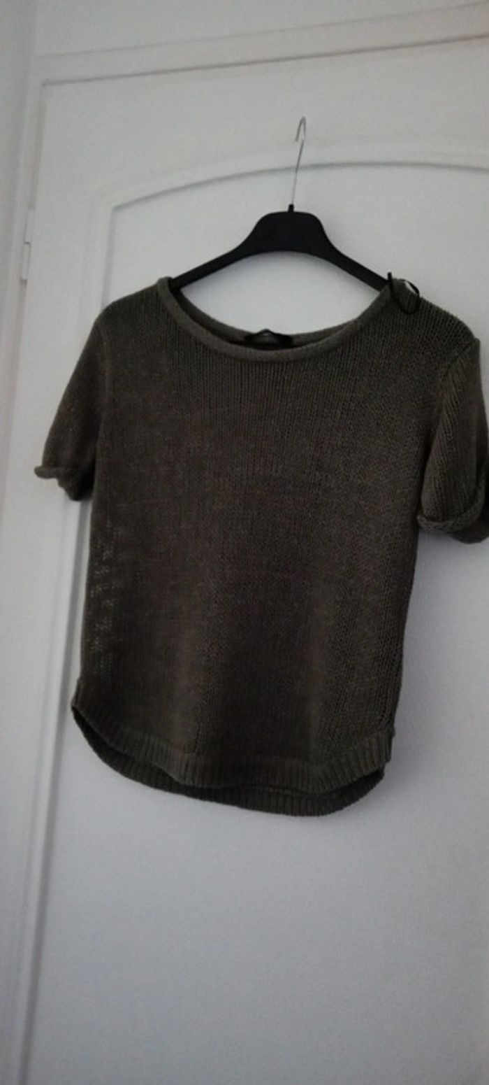 Pull manches courtes col rond maille fine kaki femme xs - photo numéro 1