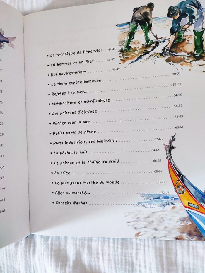 La Pêche racontée aux enfants Album LA MARTINIERE JEUNESSE Quel est le point commun entre un Terre-Neuvas du 18ème siècle, un jeune Africain vivant dans un village côtier et un industriel breton ? La pêche ! Dans le monde, un homme sur six ne peut survivre sans la pêche... Source de nourriture ou de revenus, chaque nuit, partout dans le monde, une quarantaine de millions de pêcheurs affrontent la mer. Si chacun possède sa technique, tous sont soumis aux mêmes réglementations. Malgré cela, les ressources de la mer diminuent et 3 espèces sur 10 sont en train de s'épuiser ! La vie d'un pêcheur est mise à rude épreuve chaque jour : il est tantôt le travailleur acharné luttant contre les flots, tantôt l'homme attendant patiemment que le poisson morde à l'hameçon. Remise activée sur les lots