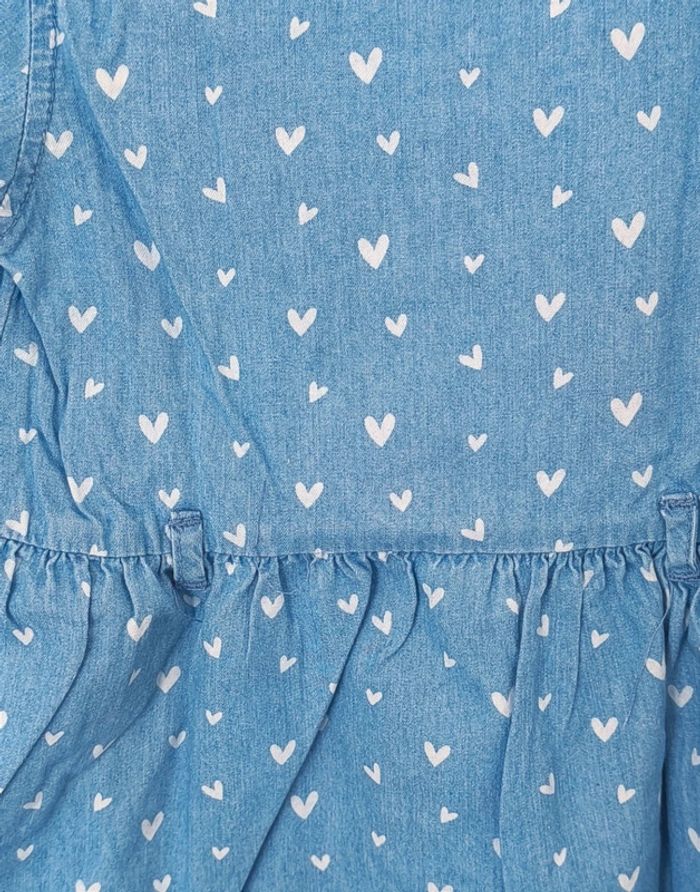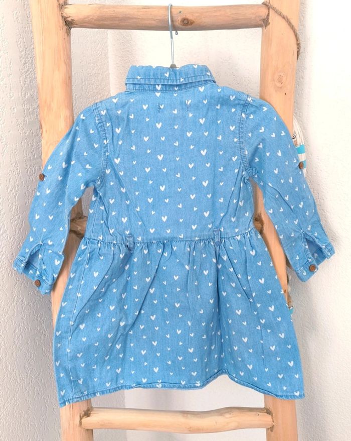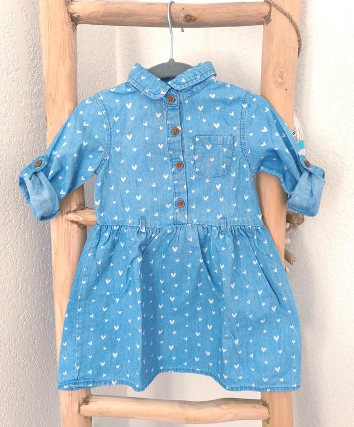 Robe en jean Primark motifs coeurs se porte manches longues ou manches relevées 12 mois #loulaliefille12mois ds la barre de recherche pour mon 12 mois fille Kiabi seconde main possible