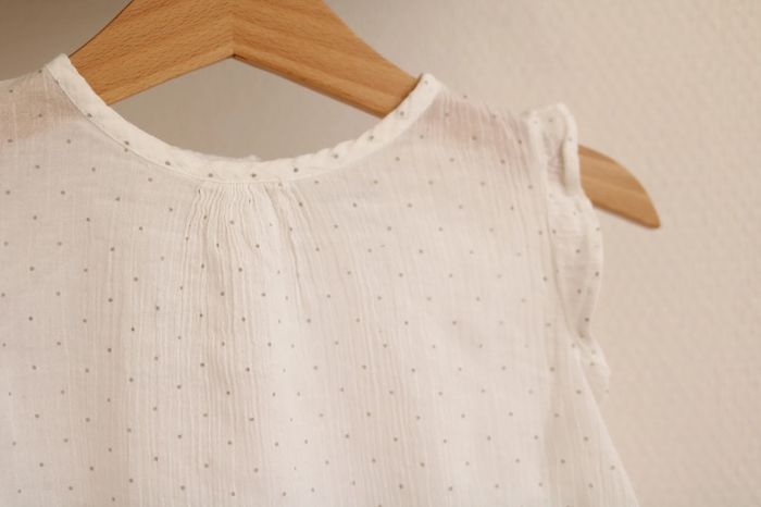 ✨ Jolie blouse blanche à points gris en tissu très fin. Idéal pour les grandes chaleurs de l'été. Taille : 9 mois s. Marque : Bout'chou. Couleur(s) : Blanc. État : Très bon. #AuxJoliesTrouvailles_9mois_fille #AuxJoliesTrouvailles_Boutchou #bébé #fluide #léger #été #blouse 📦 Je m'assure d'expédier les colis au plus vite dès que je reçois la commande. Pour toute demande de lot, vous pouvez me contacter par message privé, et m'envoyer des captures écrans des articles désirés. 😊 Je ferai de mon mieux pour répondre à votre demande dans les meilleurs délais possibles. 🙏 Tout n'est pas en ligne, donc n'hésitez pas à m'envoyer un message privé pour me dire vos recherches. 😉