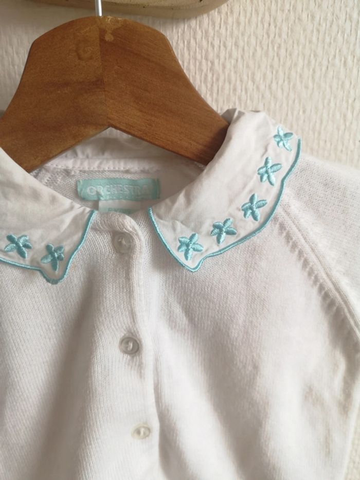 Gilet blanc col brodé bleu, Orchestra, 6 mois - photo numéro 3