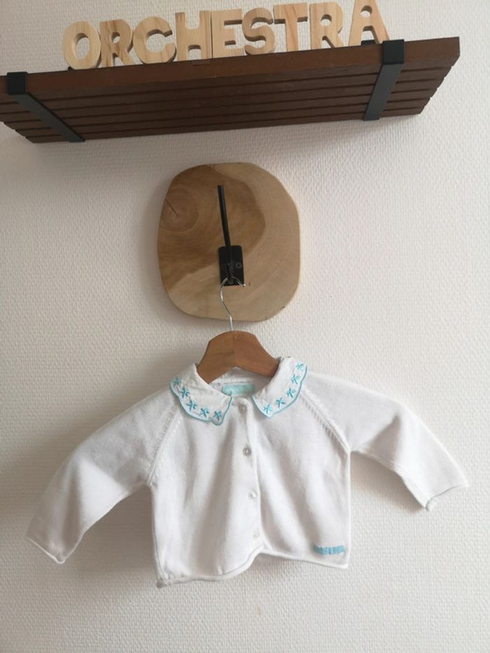 Gilet blanc col brodé bleu, Orchestra, 6 mois - photo numéro 1