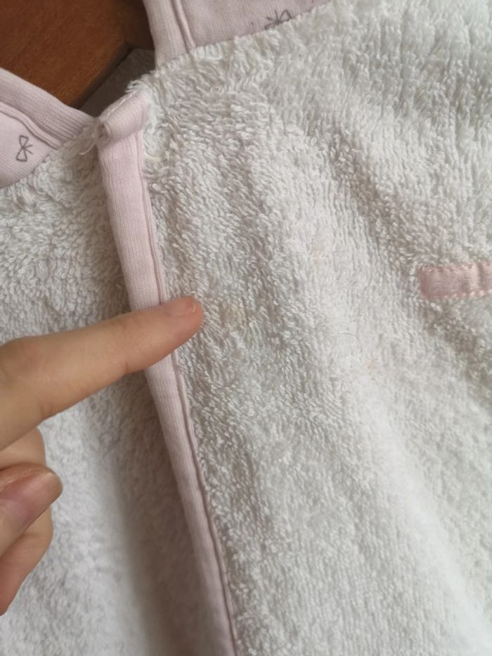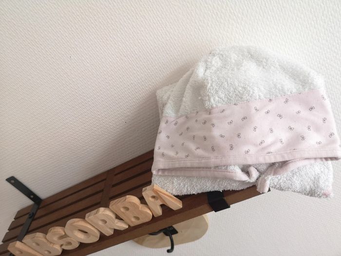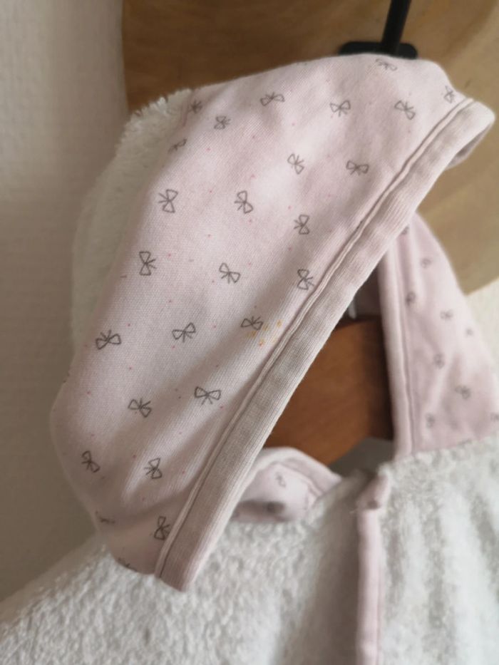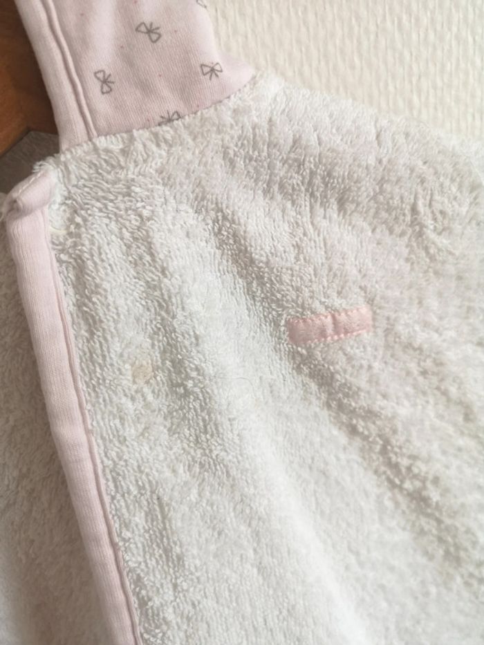 ✨ Belle cape de bain blanche avec capuche en tissu rose pâle imprimé petits nœuds. Fermeture à l'avant par une petite pression. Très jolie ! Taille unique, utilisable de la naissance à environ 2 à 3 ans. Taille : Taille unique. Marque : Absorba. État : Bon. Couleur(s) : Rose pâle et blanc. Défaut(s) : Une tache sur la capuche, et une petite ombre dans le tissu éponge, voir les photos. #AuxJoliesTrouvailles_0mois_fille #AuxJoliesTrouvailles_1mois_fille #AuxJoliesTrouvailles_Absorba 📦 Je m'assure d'expédier les colis au plus vite dès que je reçois la commande. Pour toute demande de lot, vous pouvez me contacter par message privé, et m'envoyer des captures écrans des articles désirés. 😊 Je ferai de mon mieux pour répondre à votre demande dans les meilleurs délais possibles. 🙏 Tout n'est pas en ligne, donc n'hésitez pas à m'envoyer un message privé pour me dire vos recherches. 😉