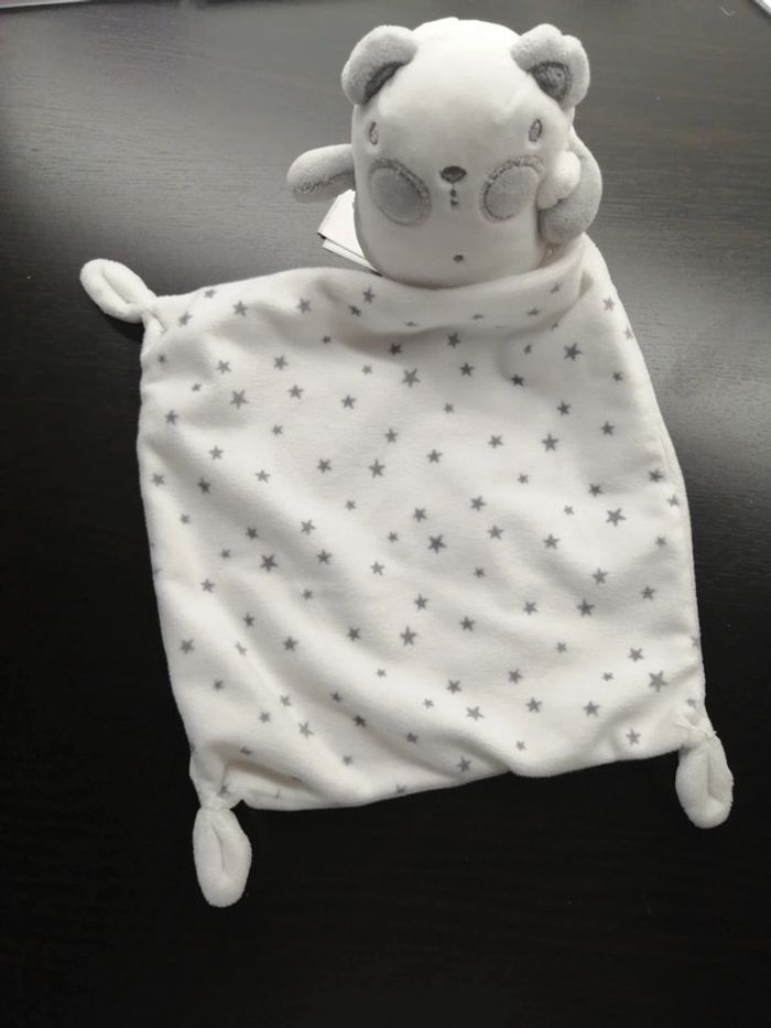 Doudou Ours mouchoir blanc gris étoiles tape à l'œil - photo numéro 1