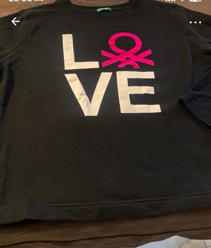 Beau sweat molletonné benetton noir , logo fuschia, taille 16 ans ou S