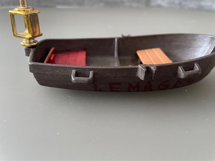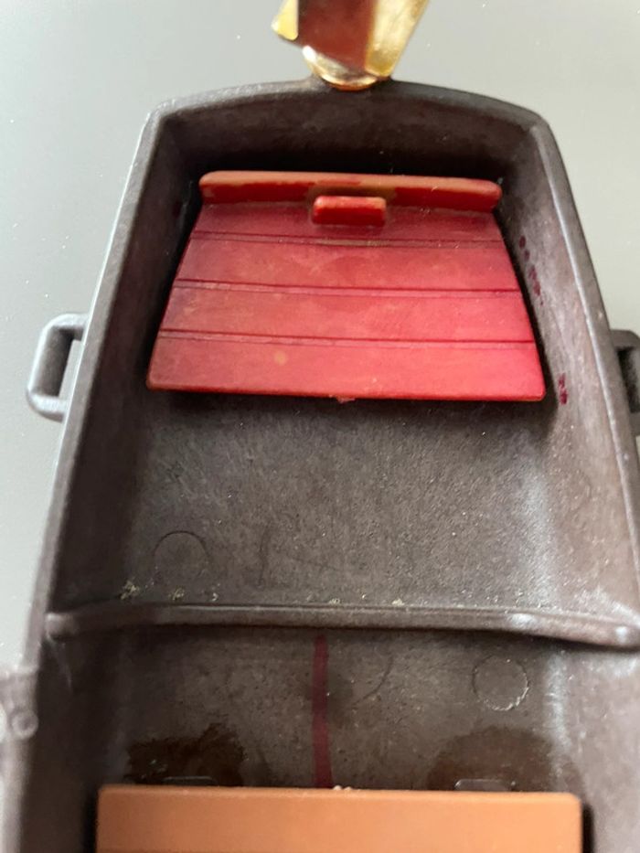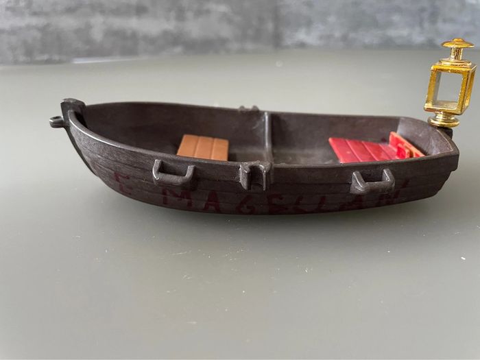 Playmobil pirate ancien modèle avec barque et accessoires. État satisfaisant La barque est crayonnée 2 personnages ont leur crochet cassé Voir photos #playmobil #vintage #bateau #pirate