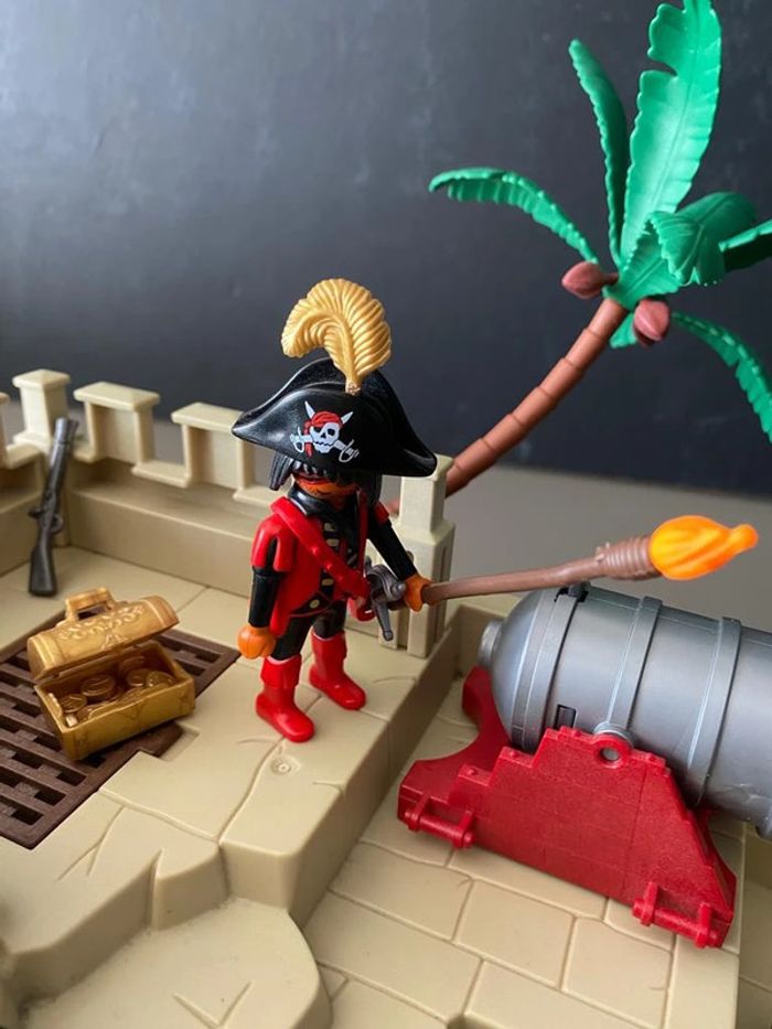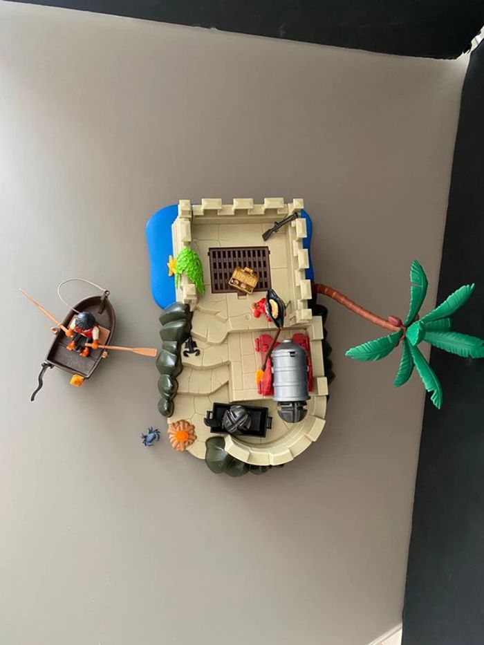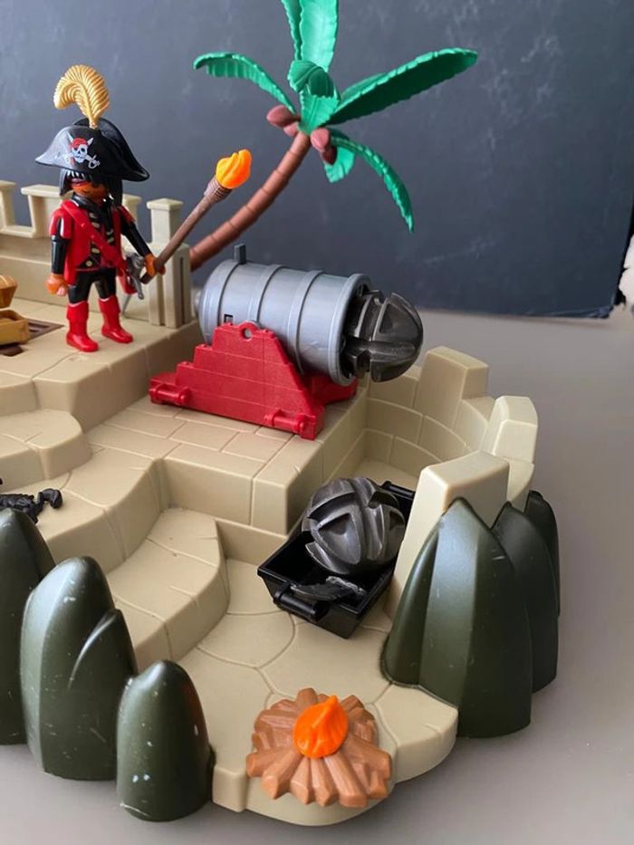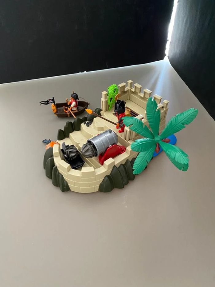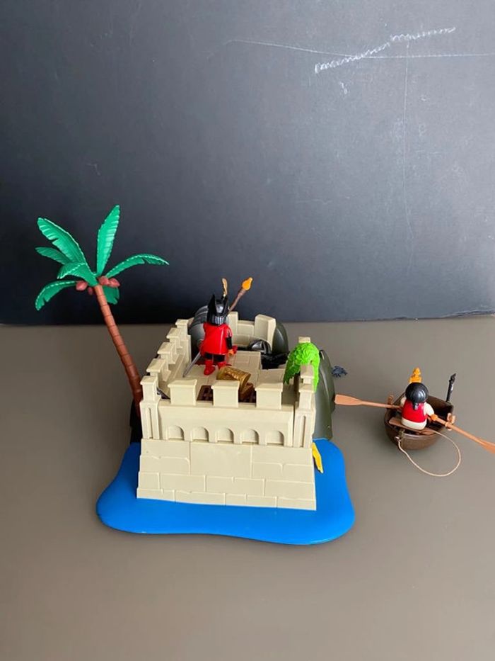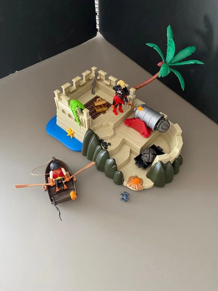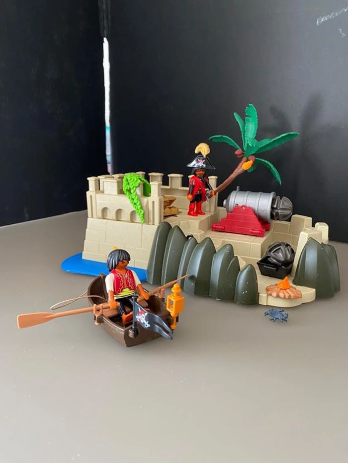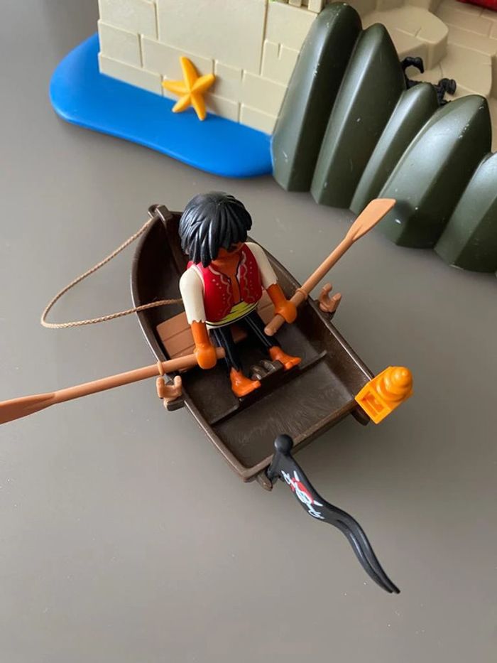 Playmobil repaire des pirates En très bon état Quelques traces sur les rochers et une anse de la barque est abîmée Voir les photos