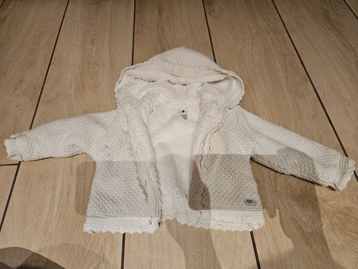 Manteau blanc 9 mois avec 2 petites tâches noires qui partent sûrement à la machine