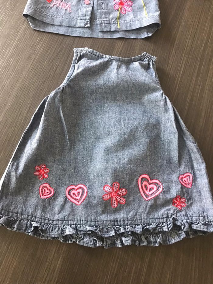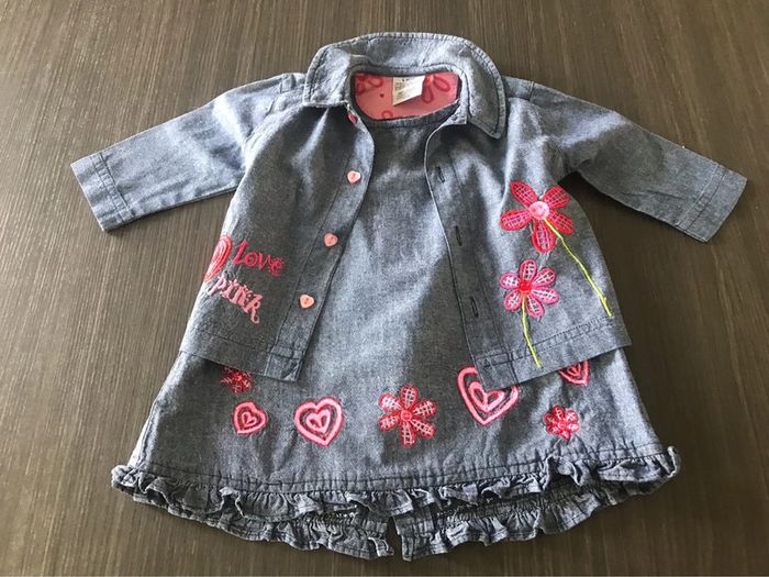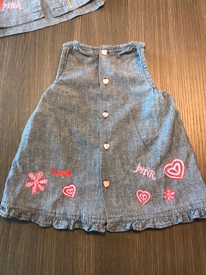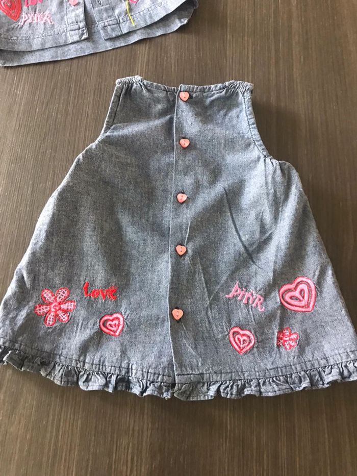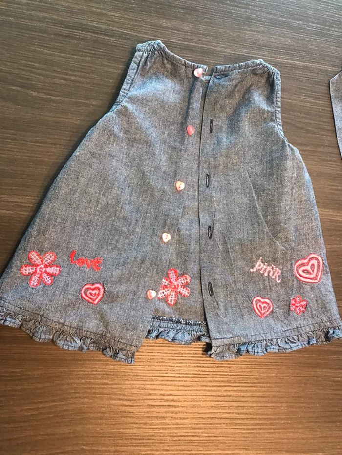 Robe 100% coton avec fermeture au dos à l’aide de joli bouton rose en forme de cœur , fleur et cœur cousu parti basse
