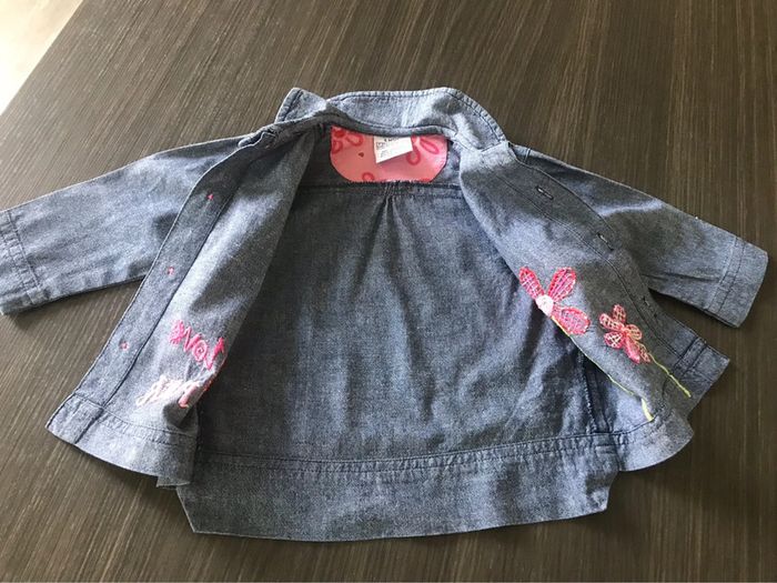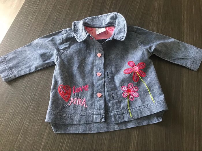 Une veste 100% coton fermeture avec bouton rose en forme de cœur joli fleur brodée et inscription love pink