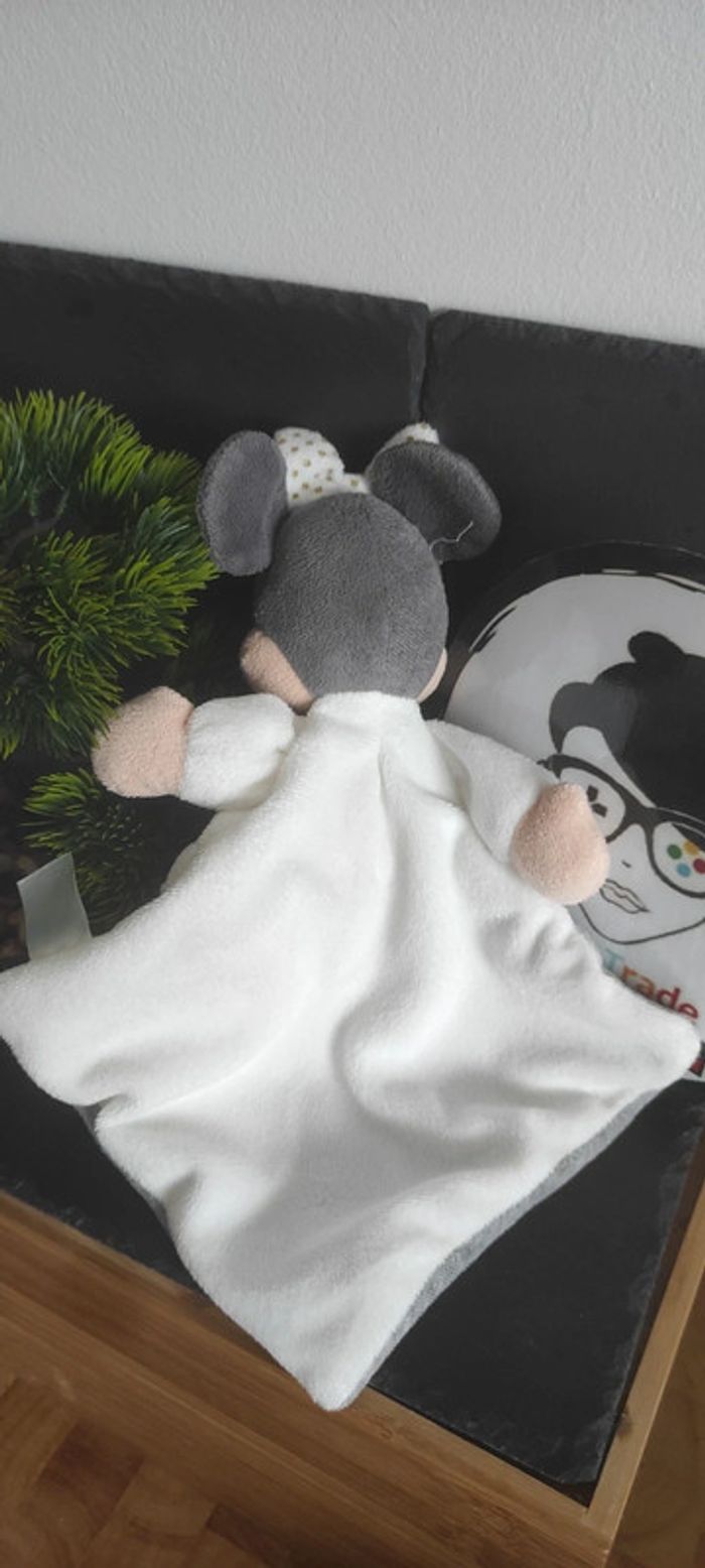 Doudou Souris Minnie Plat Gris Blanc Coeur nicotoy simba toys disney noeud pois doré jaune - photo numéro 1