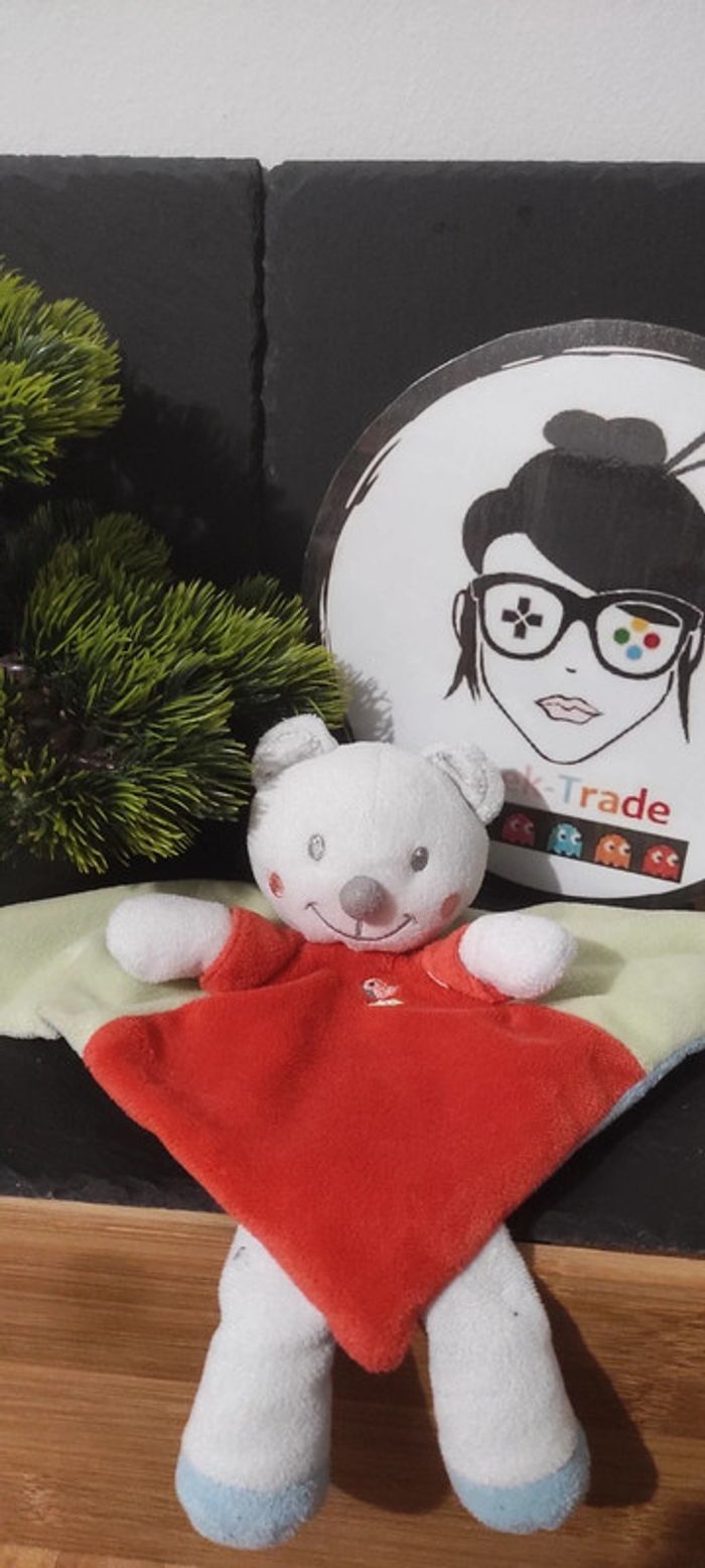 Doudou ours vert bleu rouge oiseau blanc jambe Nicotoy kiabi kitchoun Joue Rond