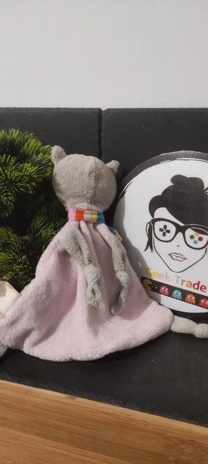 doudou baby nat chat coeurs triangle écharpe rose jaune gris Noeuds Bleu Rouge DD001430 Bon etat Afin de ne pas abîmer les doudous et de laisser le choix dans l'utilisation de la lessive les peluches ne sont pas lavées avant envoi Description complément : Petit nettoyage à prévoir Vous achetez ce que vous voyez les photos font entièrement partie de la description Transport : Les frais de transport comprennent les frais du transporteur ainsi que l'emballage pour protéger au mieux votre achat. Chaque achat est envoyé en format colis avec numéro de suivi Le poids du colis est de 500g finit (je ne peux pas faire moins) il peut donc y avoir plusieurs objets dans le carton si vous le souhaitez (contactez moi afinde grouper les frais de port) Référencement : #geektradedoudou #peluche #plush  #dou