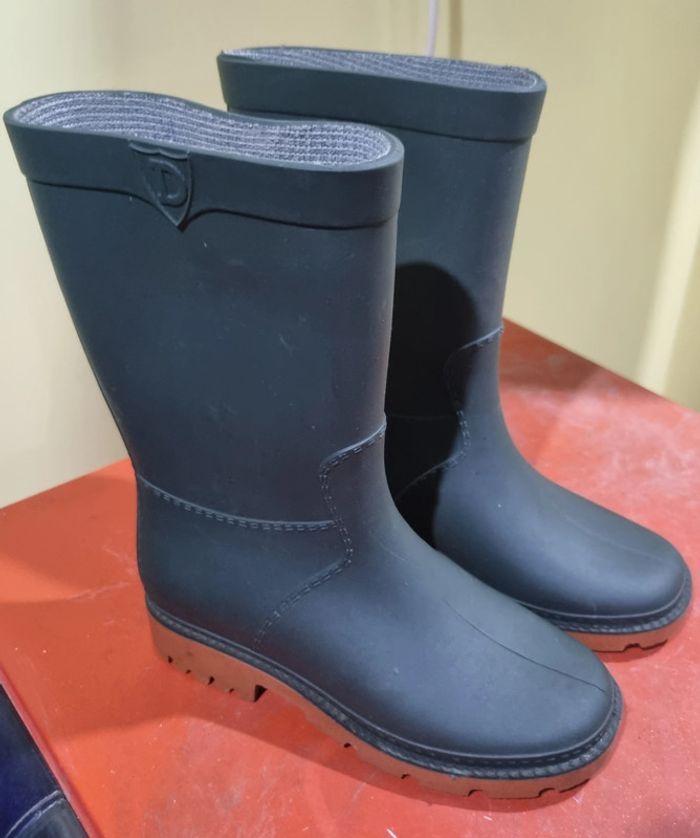 Botte en caoutchouc résistantes,achetées dans un magasin de jardinage.Légères traces d'usure sur coin des semelles. #ge2510chaussures