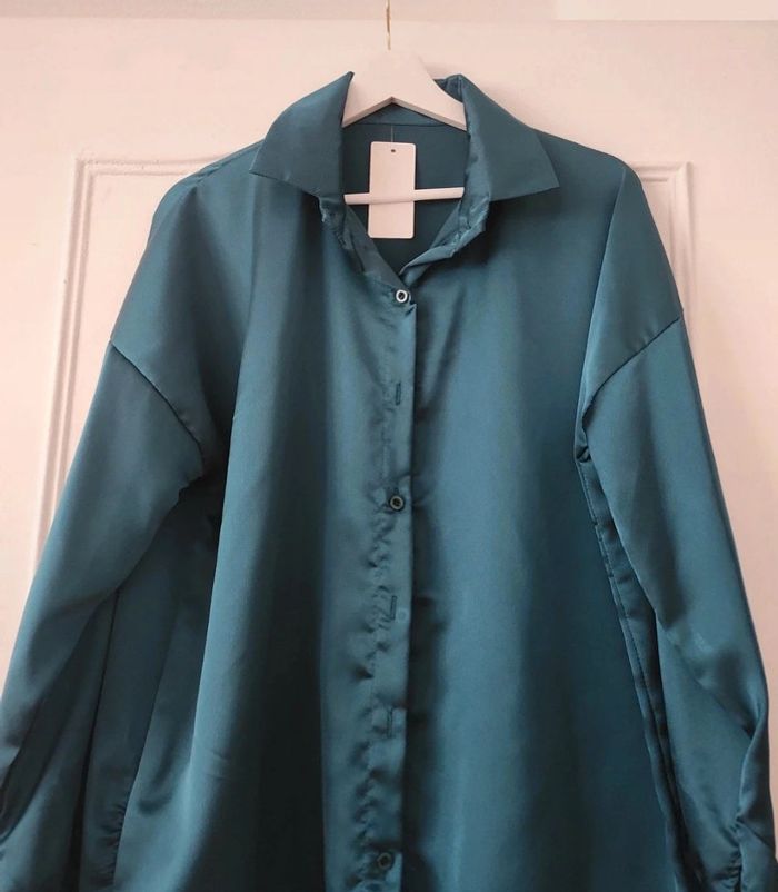 Chemise satin taille unique jusqu'au 44 couleur vert sapin neuf