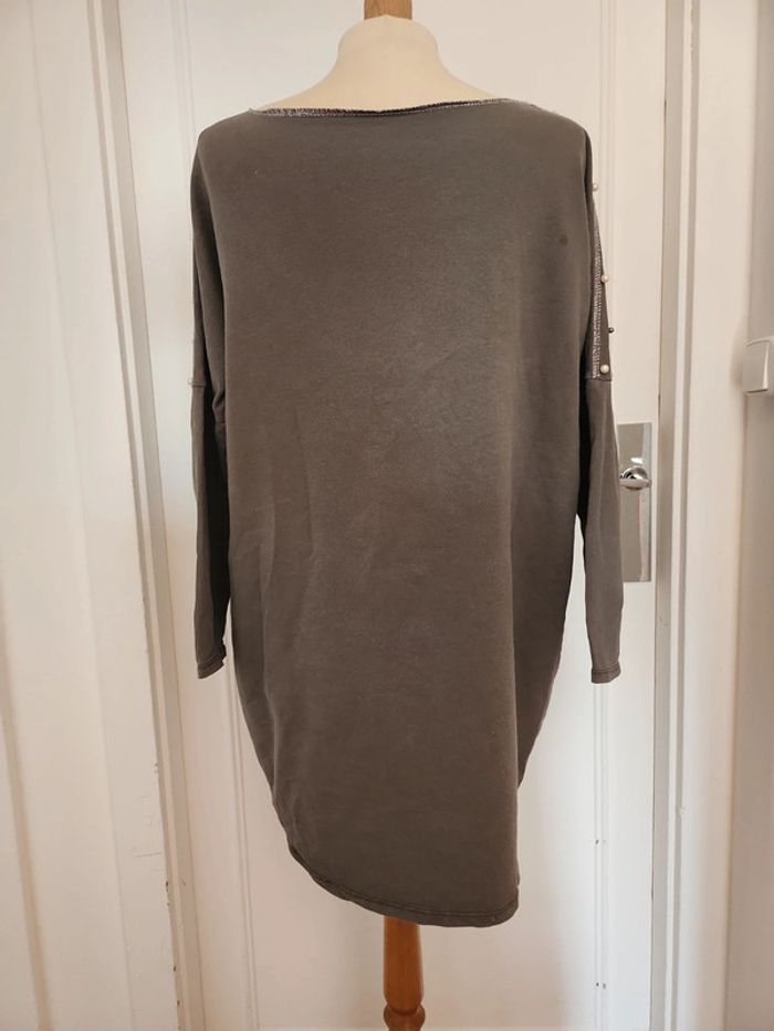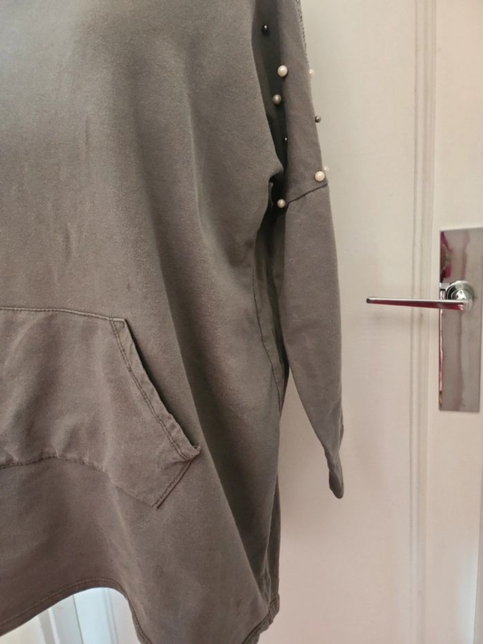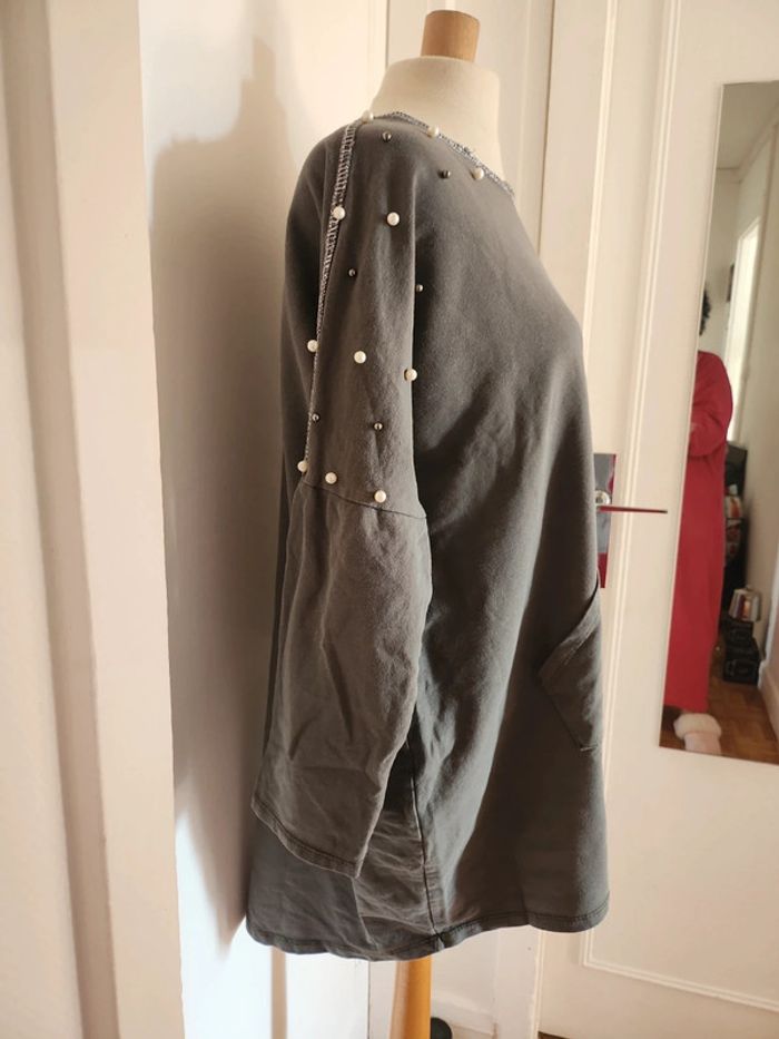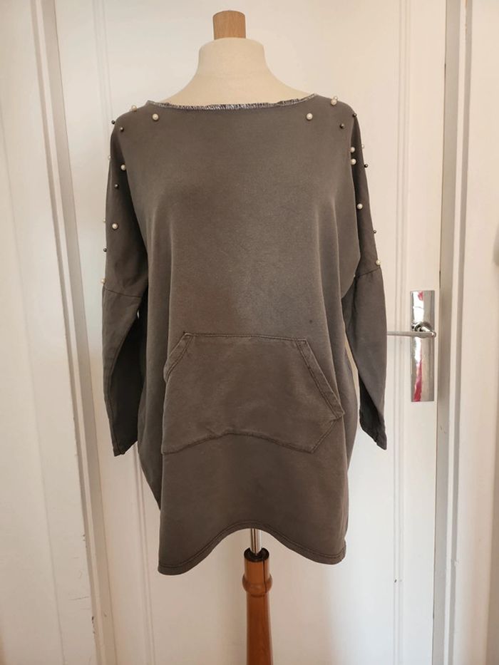 Joli pull long taille XXL 44 avec perles en tres bonne état voir neuf