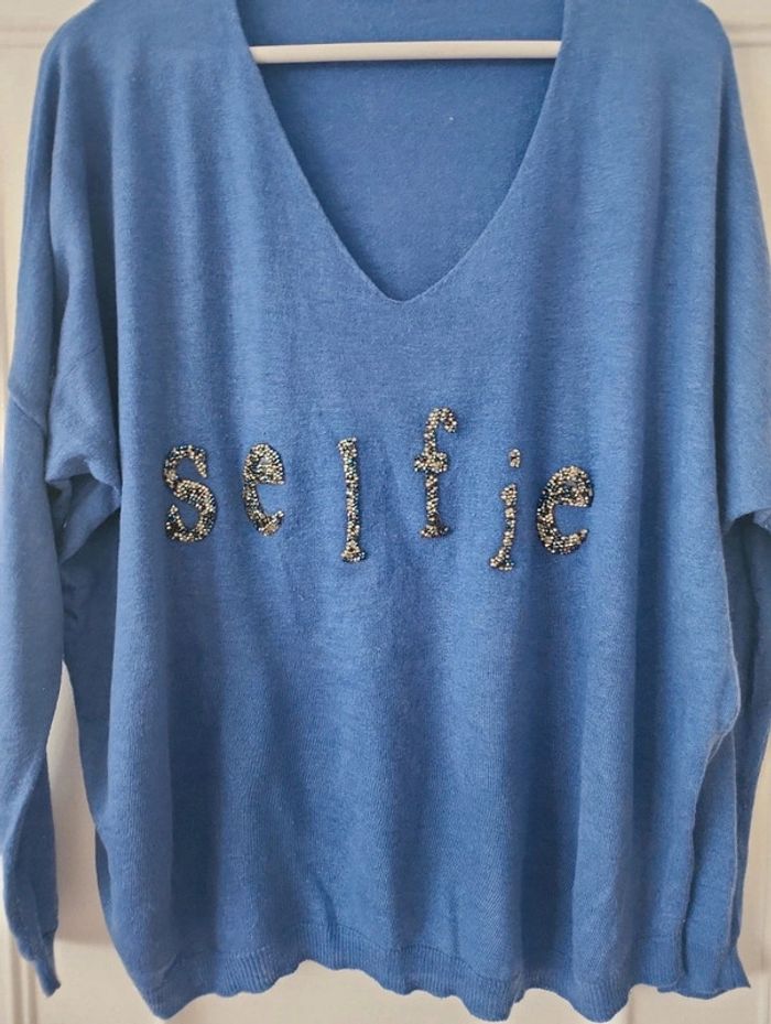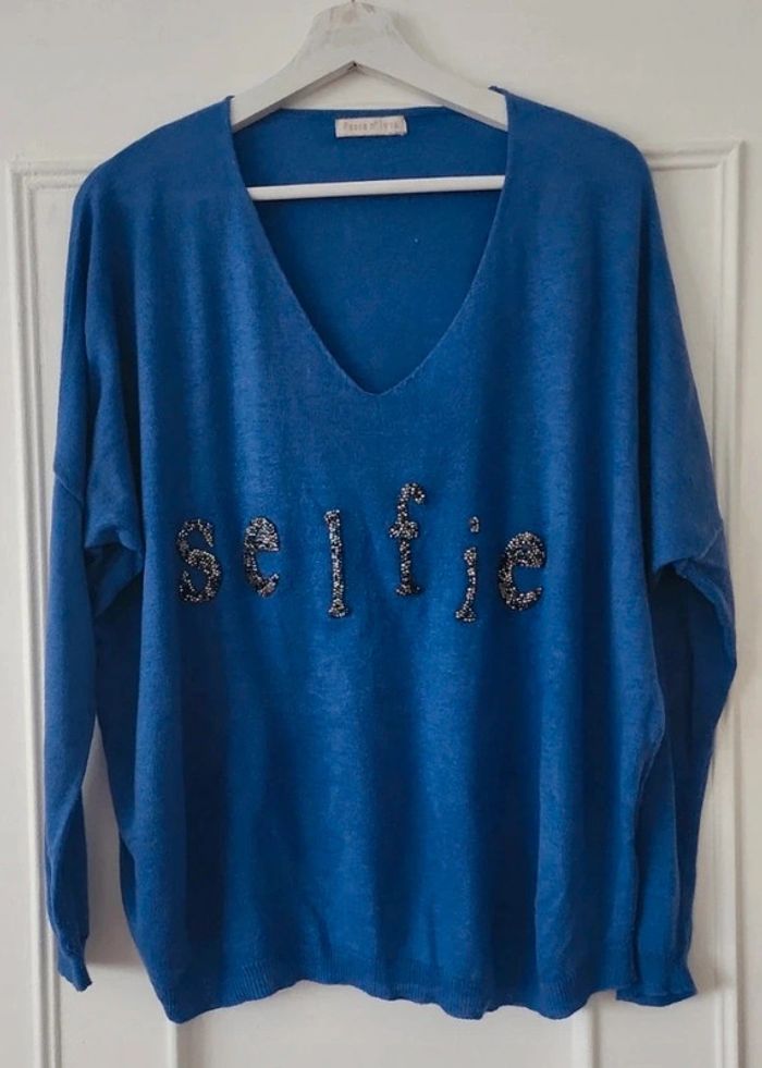 Pull col V taille XL 42/44 peut aller jusqu'au 46 très bon état couleur bleu violet