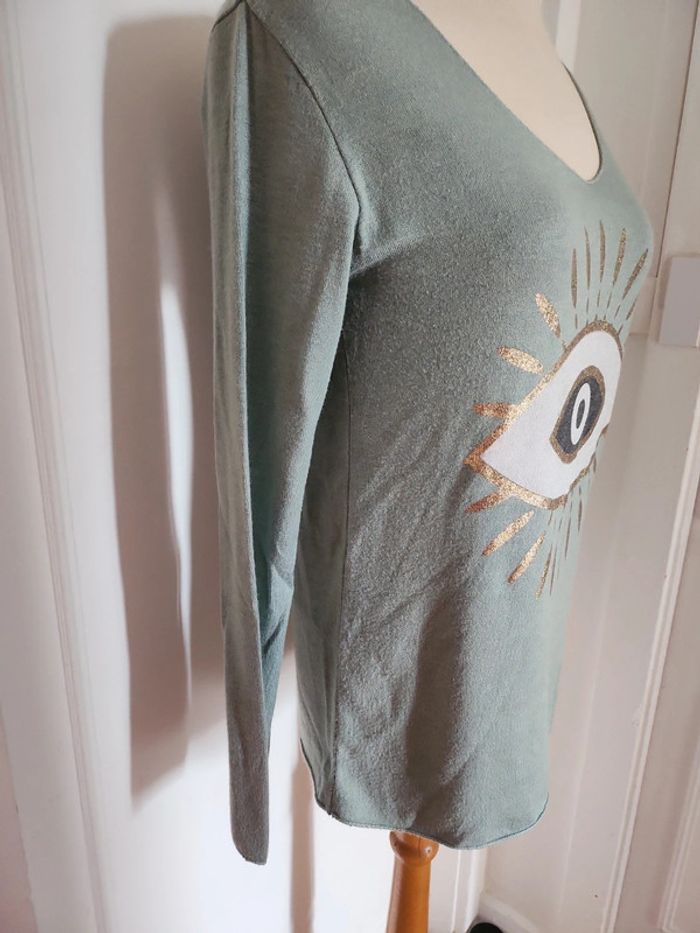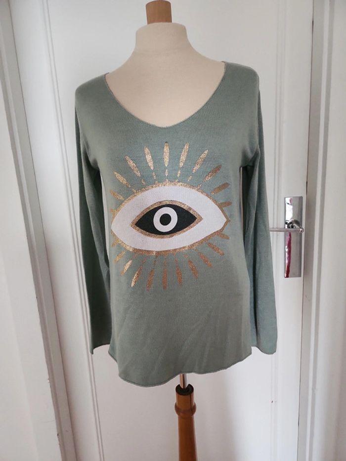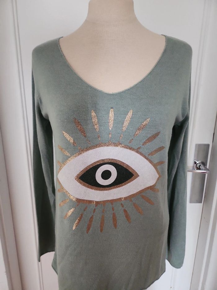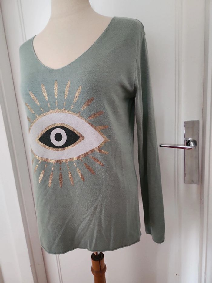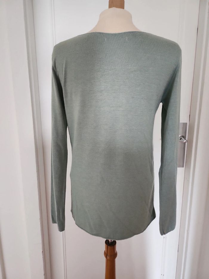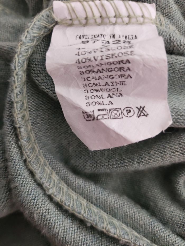 Pull col V taille M 38 couleur vert 30%laine et 30% angora neuf très doux