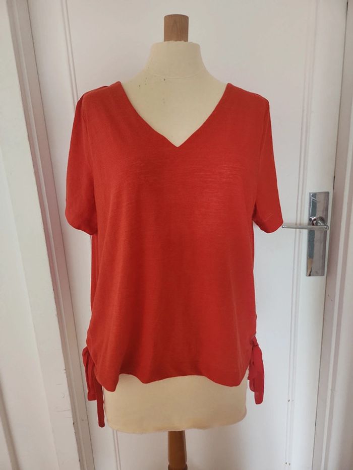 Jolie blouse manches courtes col V taille XL 44 couleur orange neuve