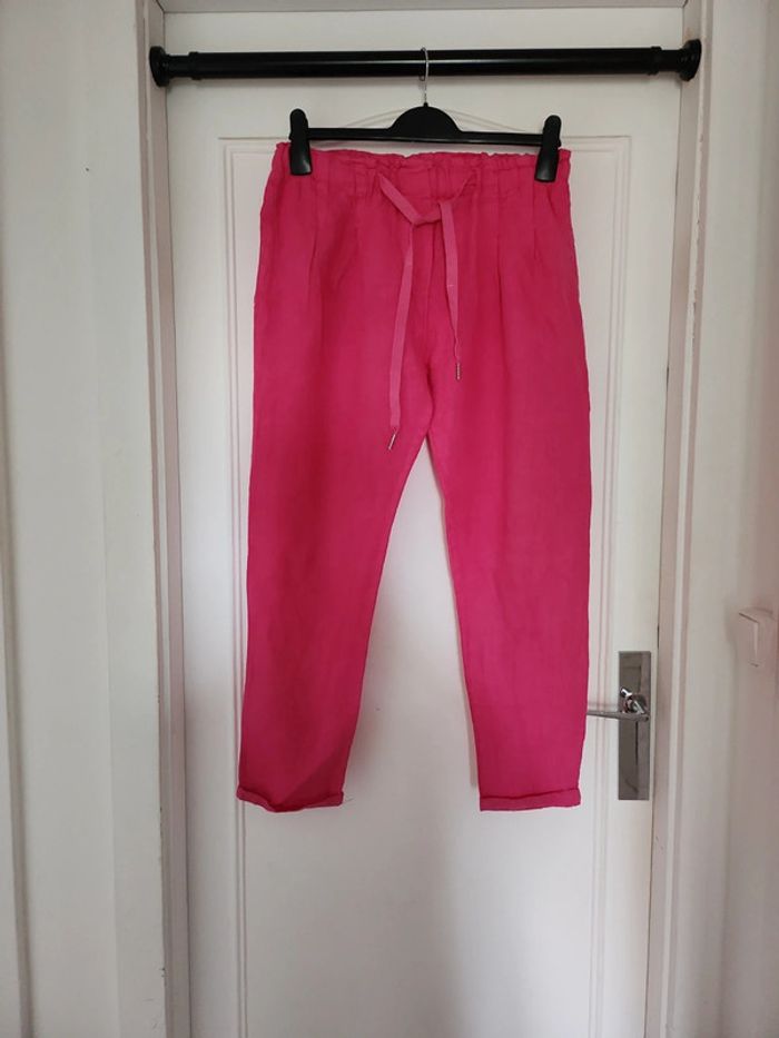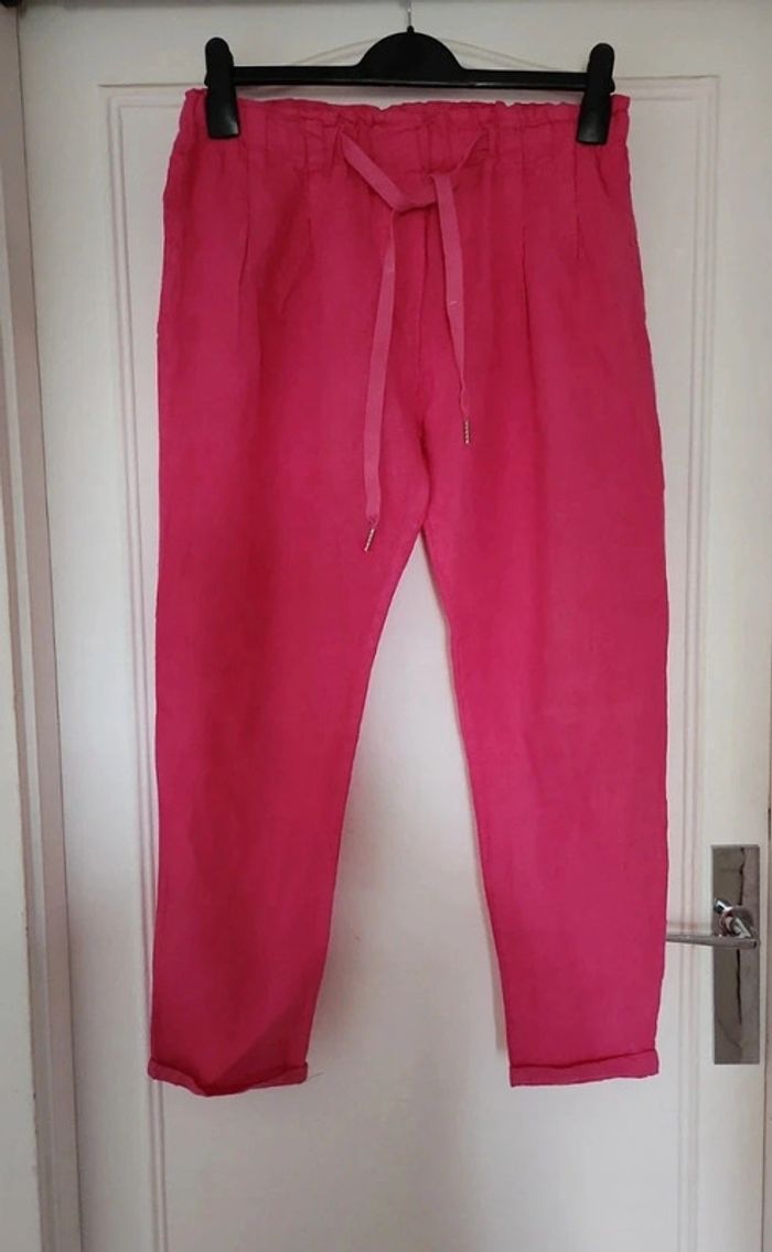 Joli pantalon taille M 38/40 couleur rose 100% lin neuf