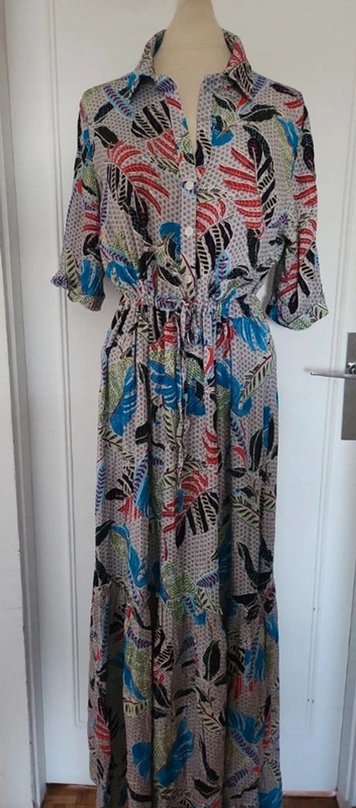 Très jolie robe longue d été taille M 38/40 manches 3/4 serrage à la taille neuve