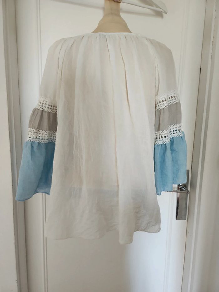 Très jolie blouse taille L 40/42 Très agréable à porter transparente manche 3/4 neuve