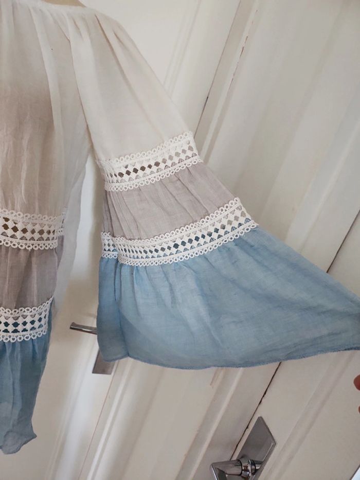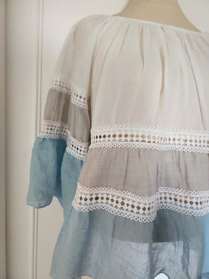 Très jolie blouse taille L 40/42 Très agréable à porter transparente manche 3/4 neuve