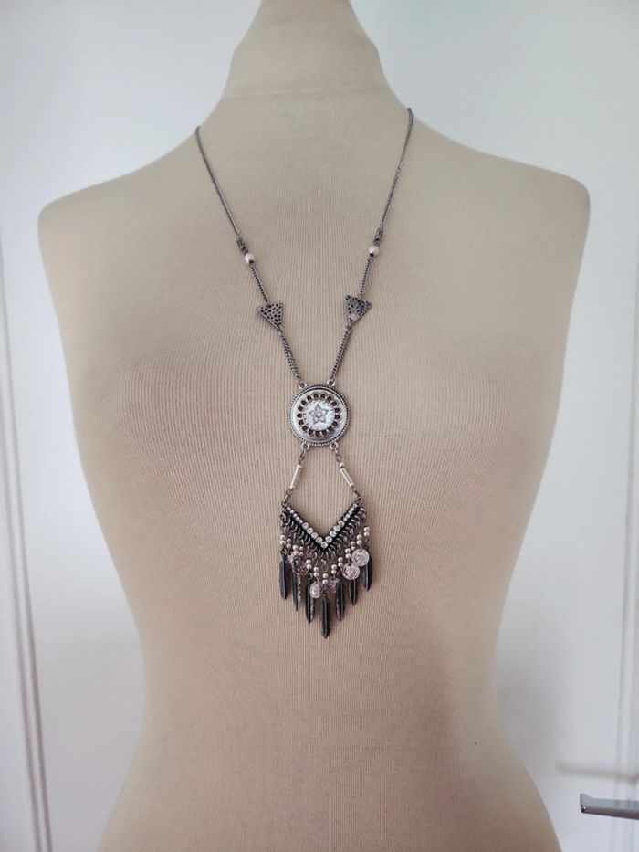 Très joli collier long en acier inoxydable neuf