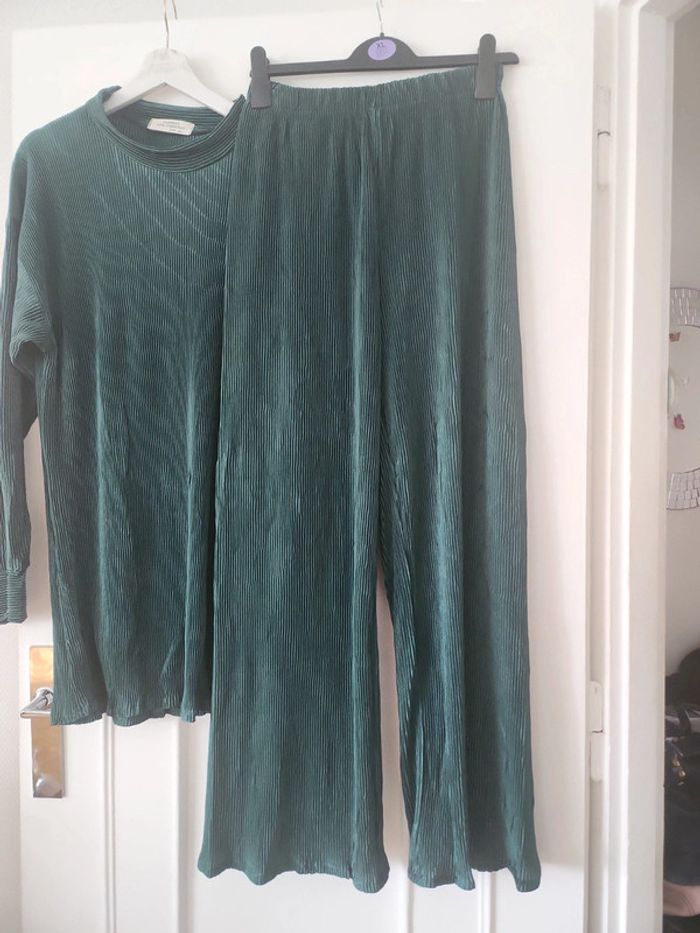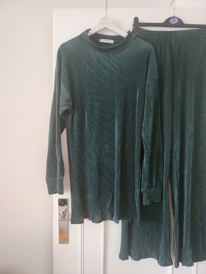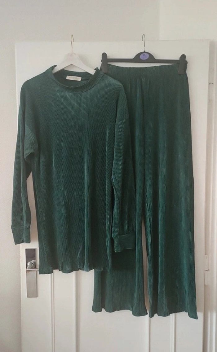 Ensemble haut manches longues et pantalon large taille M 38 couleur vert sapin