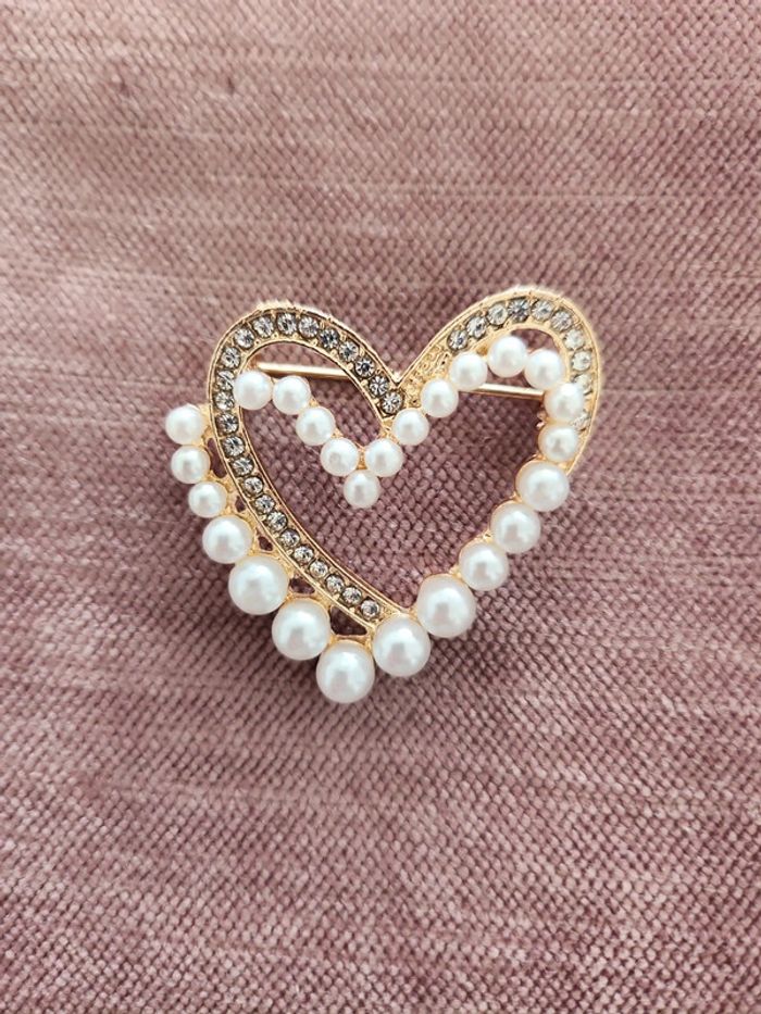 Broche dorée Strass forme cœur