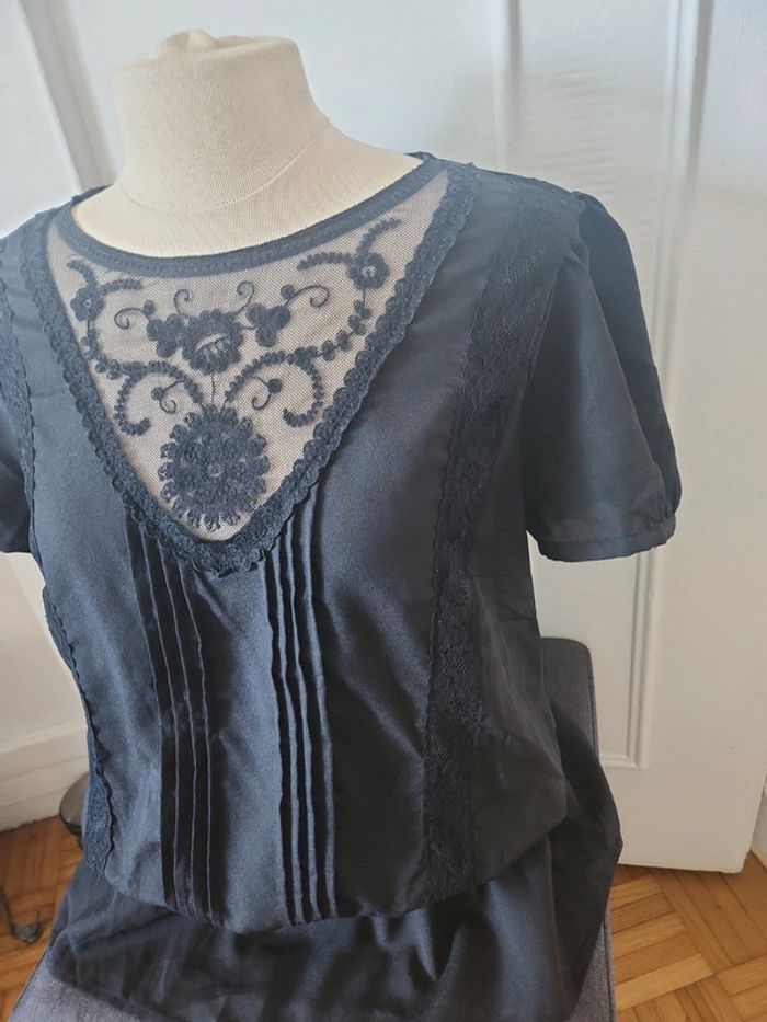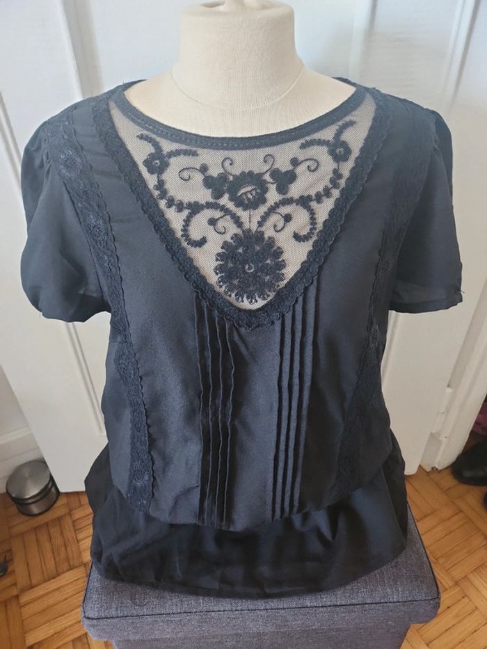 Jolie chemise taille XL 42 manches courtes à dentelle élastique à la taille