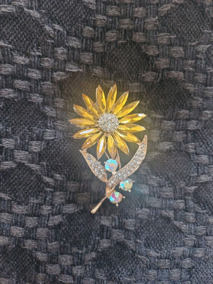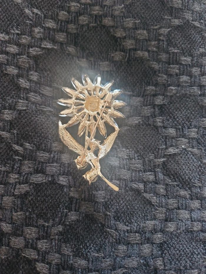 Broche dorée Strass forme fleur neuve
