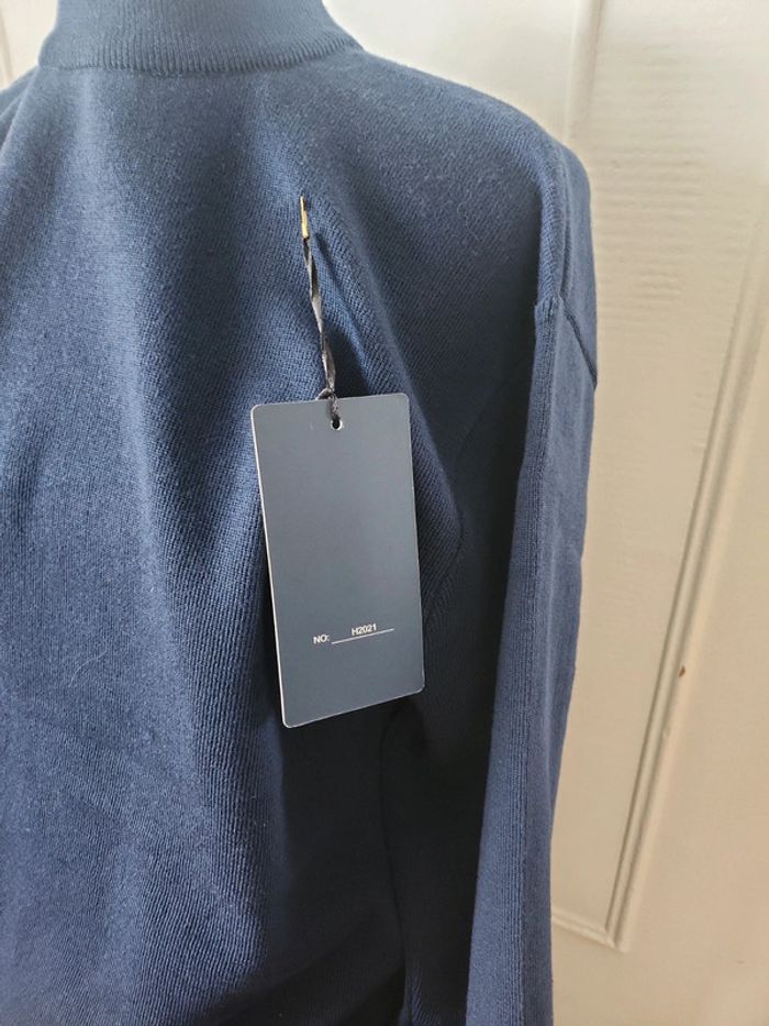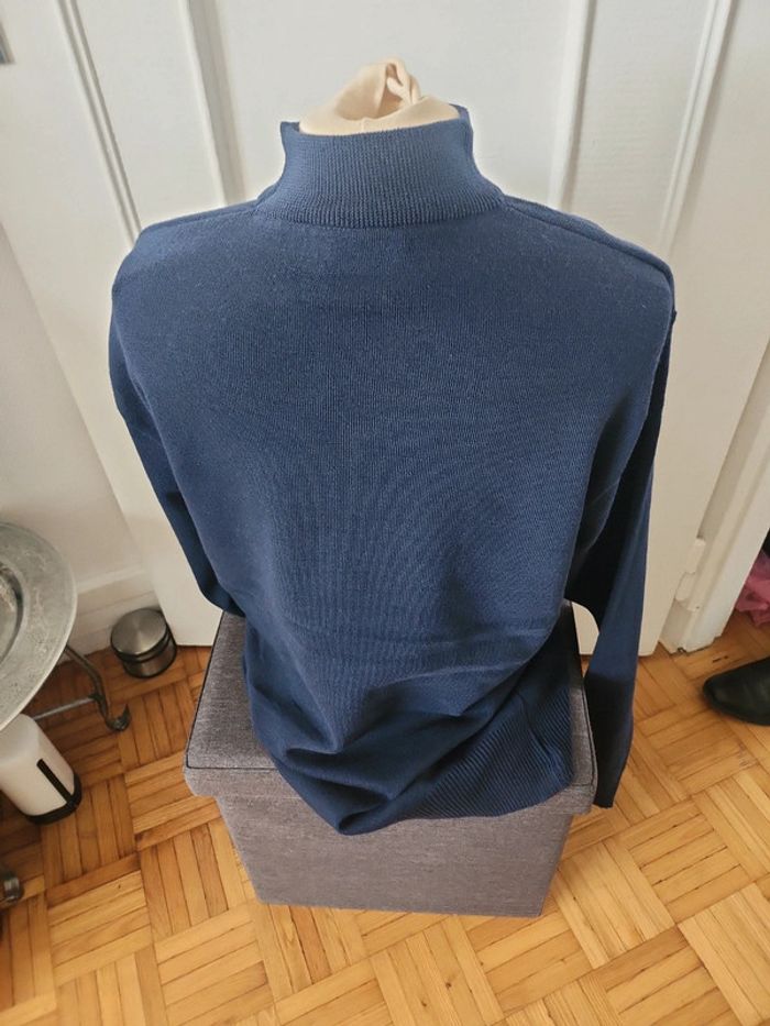 Pull col cheminé taille XXL couleur bleu marine 30% laine N hésitez pas à faire un lot une réduction automatique se fera automatiquement 😉