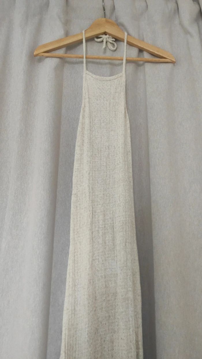Robe neuve longue Kiabi beige, dos nu, maille ajourée - photo numéro 2