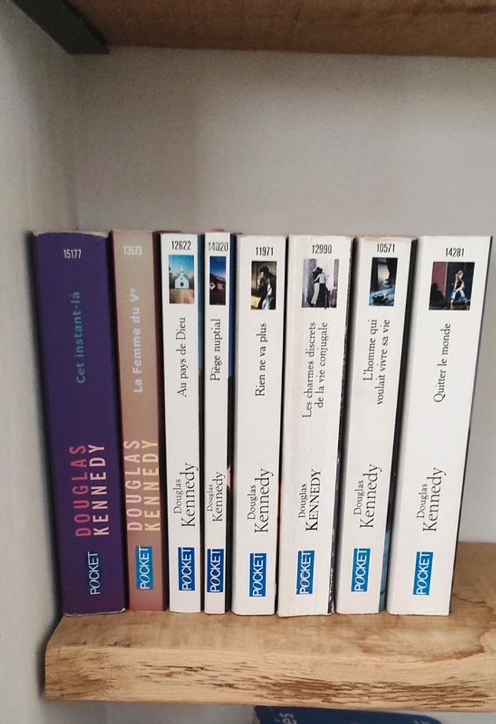 Lot de 8 livres de Douglas Kennedy - Cet instant là - La femme du Vème - Au pays de Dieu - Piège nuptial - Rien ne va plus - Les charmes discrets de la vie conjugale - L'homme qui voulait vivre sa vie - Quitter le monde Tous lus une fois, très bon état 12,50€ le lot ou 1,75€ le livre à l'unité #livressolenejg 📦 Envoi rapide et soigné sous 48h 🛍️ Petits prix et réductions sur les lots jusqu'à 15% !