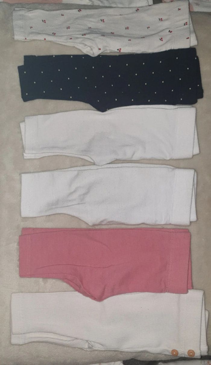 Lot de 6 leegings taille 1mois Excellent état 3 blancs 1 rose 1 motif cerises 1 bleu marine à pois 3€ Possibilité de faire des lots