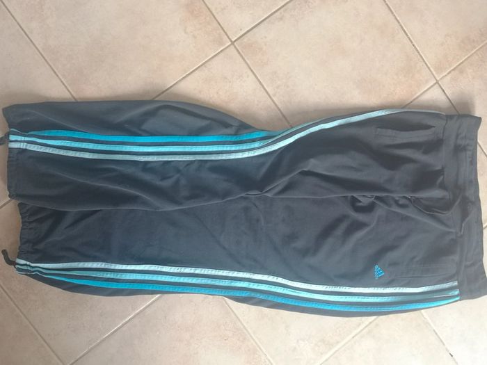 Survet adidas Noir avec 3 bandes bleu Pas tâchés ni troué Maison non fumeur Taille xs mais comme tout survet ça peut faire Taille S #justine180814_femme #justine180814_S #justine180814_pantalon