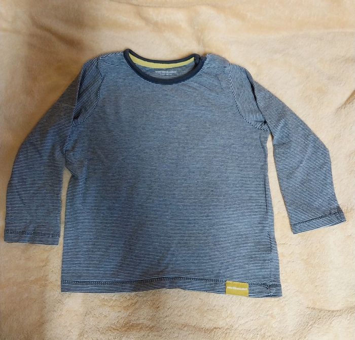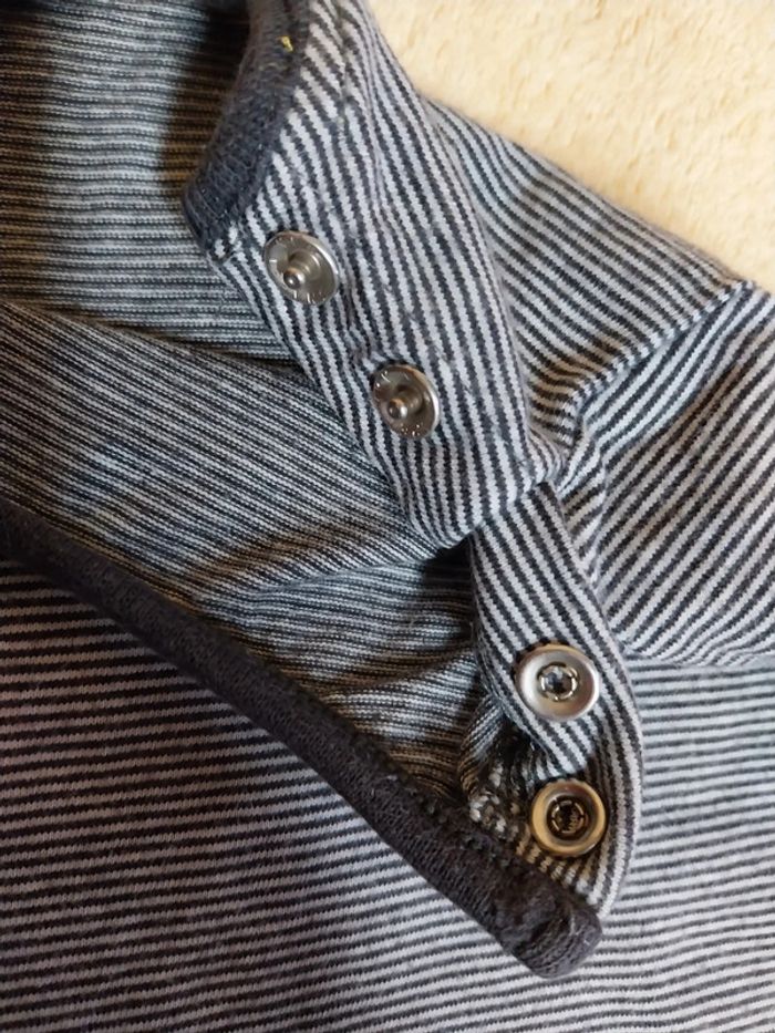 Tee-shirt manches longues Vertbaudet taille 2 ans gris à rayures Boutonnière à l'épaule 100% coton Léger défaut de couture aux manches #gwen89350taille18mois #gwen89350taille24mois