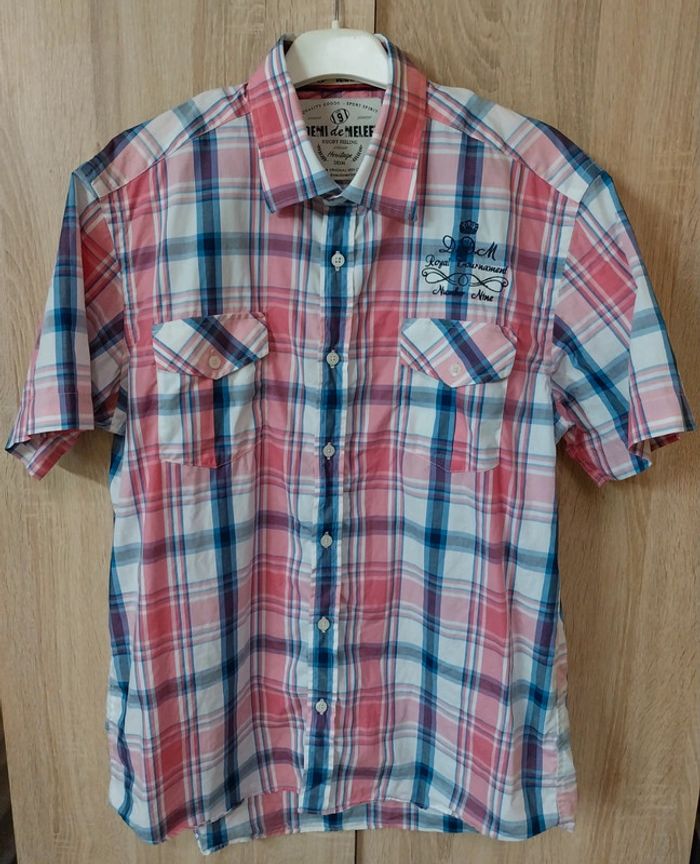 Chemisette Demi de mêlée taille M rose,blanche et bleue à carreaux Poches sur la poitrine Fermeture par boutons #gwen89350taille38