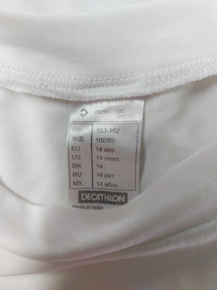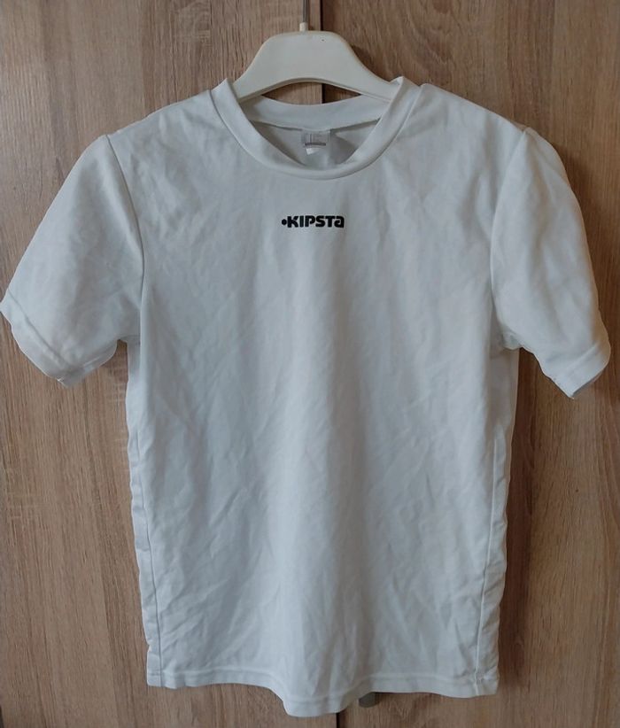 Tee-shirt Kipsta taille 12 ans blanc Matière synthétique Un petit fil tiré sur une manche Étiquette 14 ans mais taille petit Bien porté mais bon état