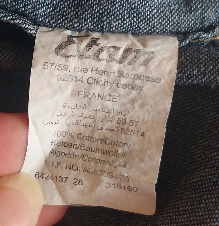Chemise en jean Etam taille 38 brut Fermeture par boutons pressions Petite poche et clous decoratifs à l'avant 100% coton #gwen89350taille38