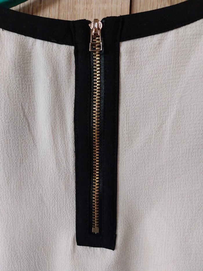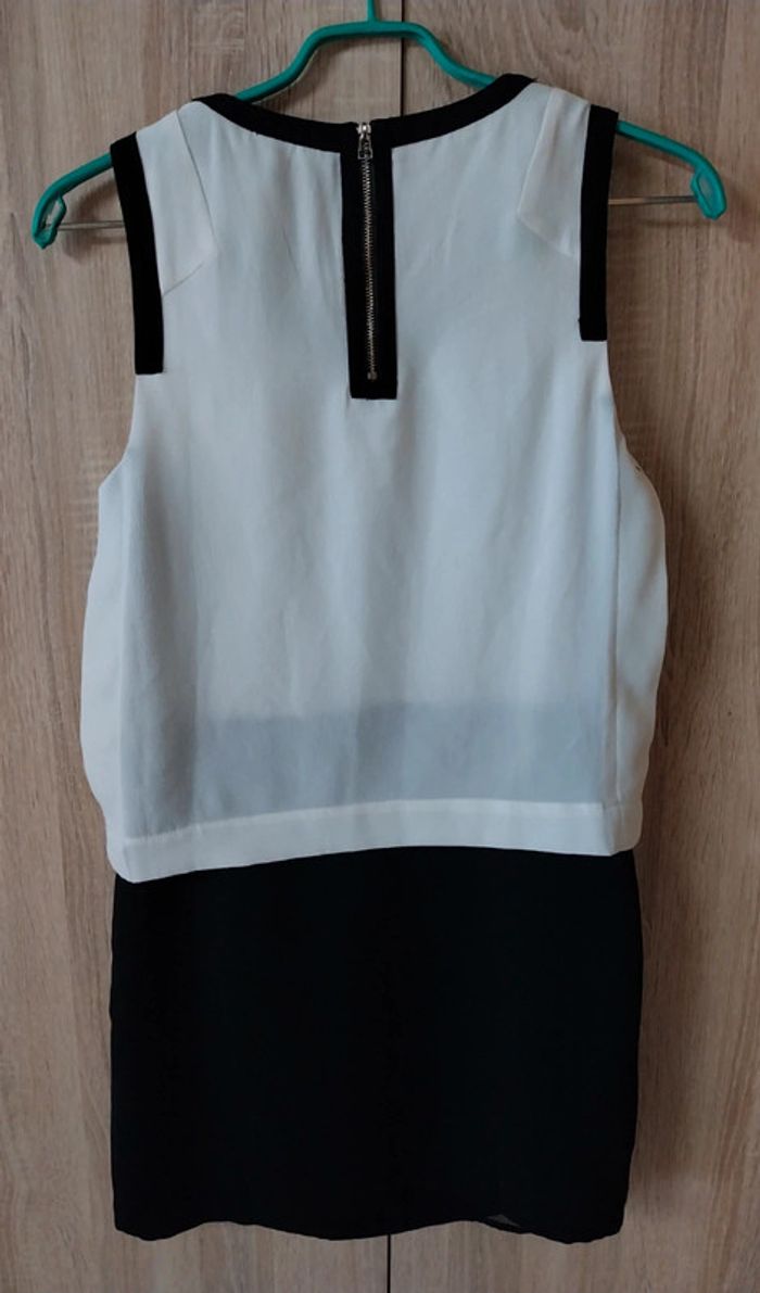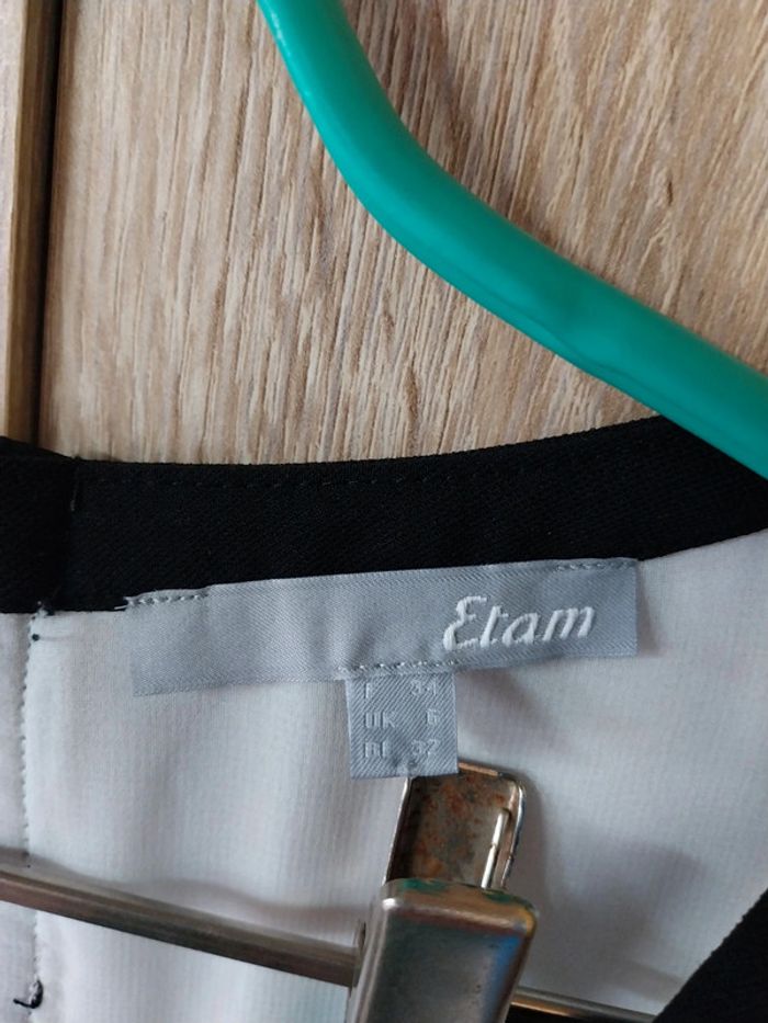 Robe Etam taille 34 noire et blanche Fausses poches à l'avant Fermeture éclair au dos Zips couleur doré Longueur de l'épaule jusqu'en bas 80 cms Matière synthétique #gwen89350taille34