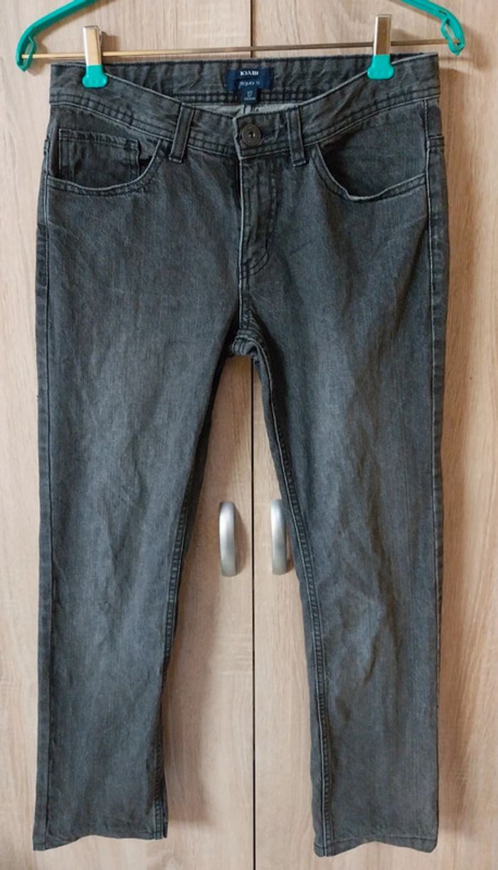 Jean Kiabi taille XS 14 ans gris Coupe droite Bouton et braguette Multipoches 100% coton Étiquette abîmée et légèrement râpé sur les couture à l'arrière (photos) #gwen89350taille14ans #gwen89350taille34